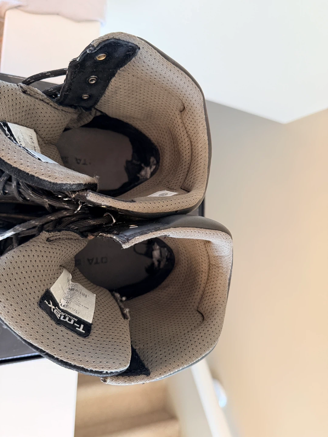 • Condition: Gently worn; back heel on both boots shows minor wear but can be easily fixed with a patch