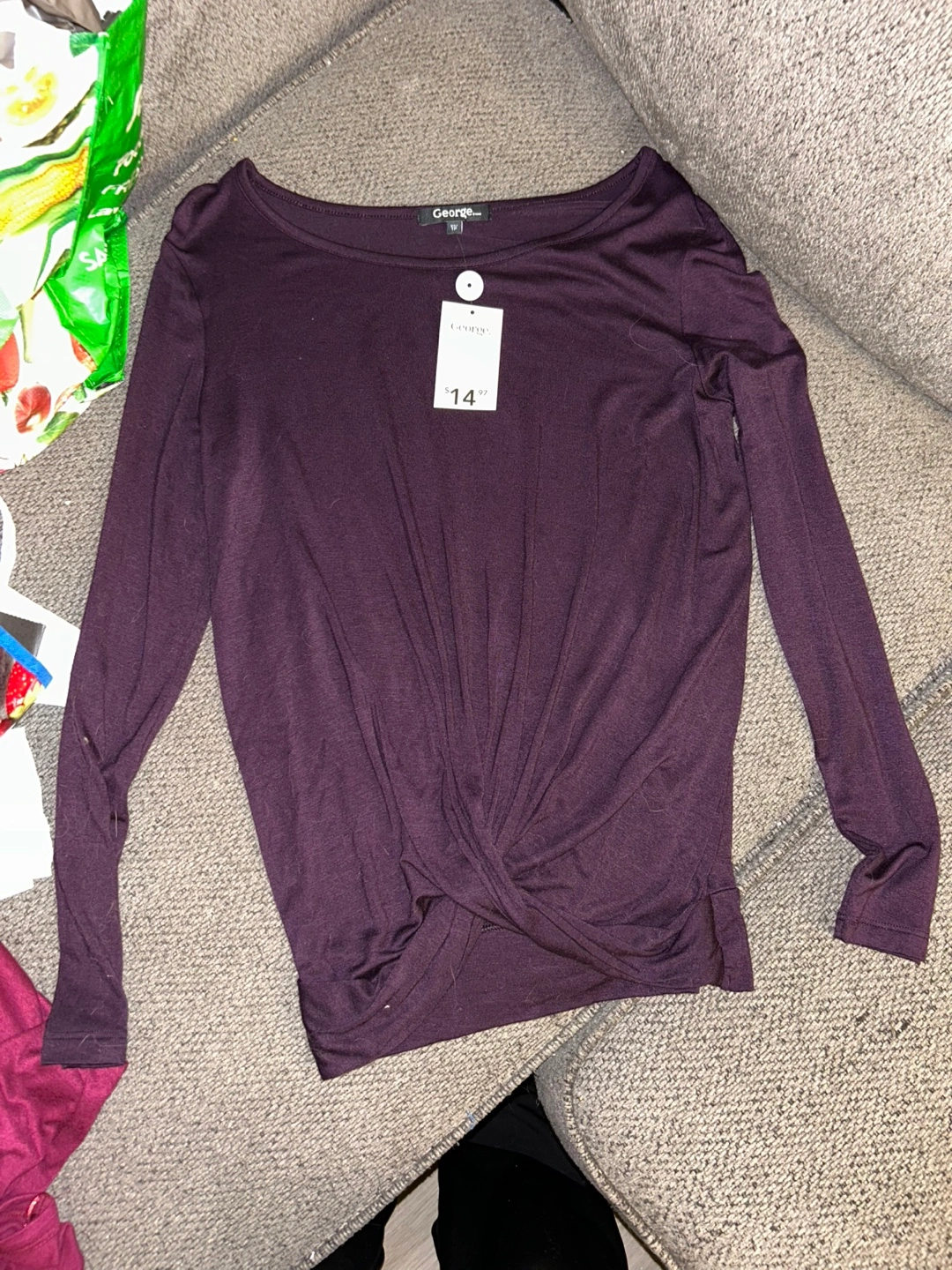 This cute long-sleeved purple top from "George" which has a stylish twist in the front. Brand new, original price was $14.97 … Size XS