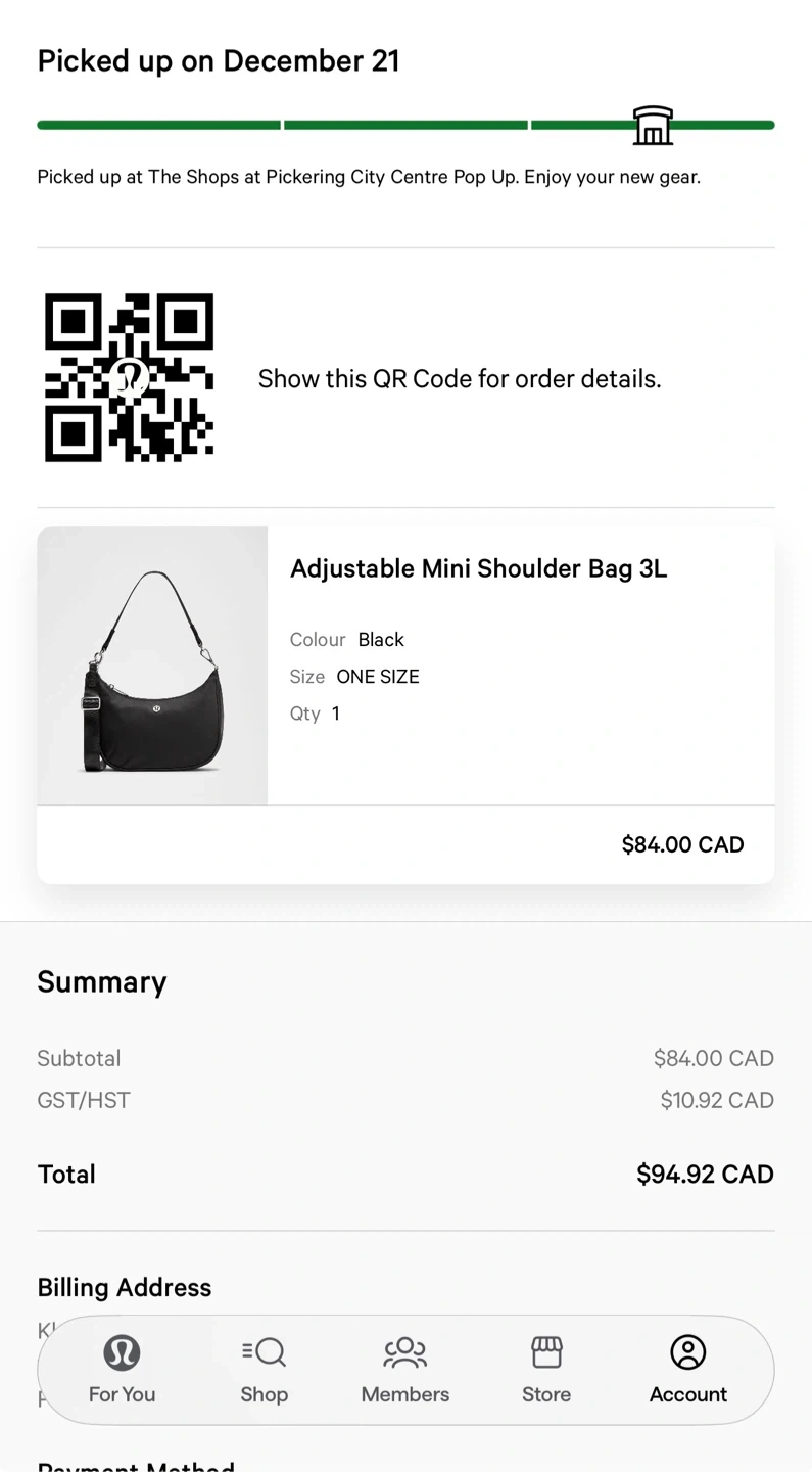 This purchase comes with a Lululemon freebie!