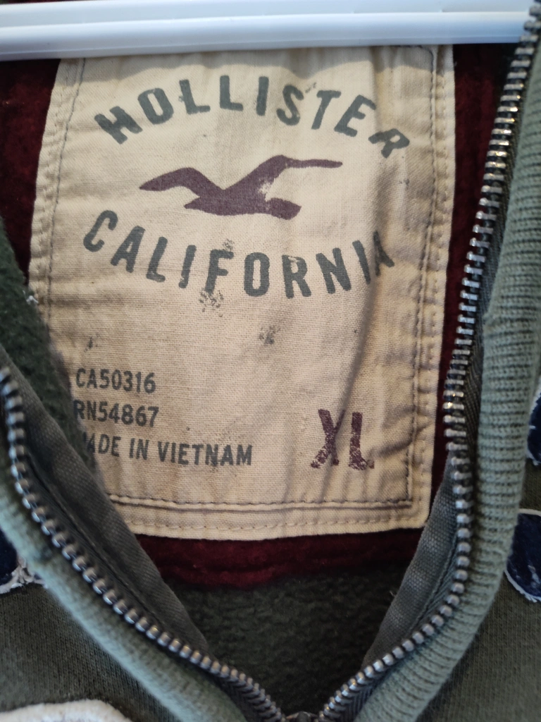 Selling a Hollister California zip-up hoodie in olive green! It's in excellent condition and is a size XL. Perfect for layering or wearing on its only. Cash only p/u Streetsville