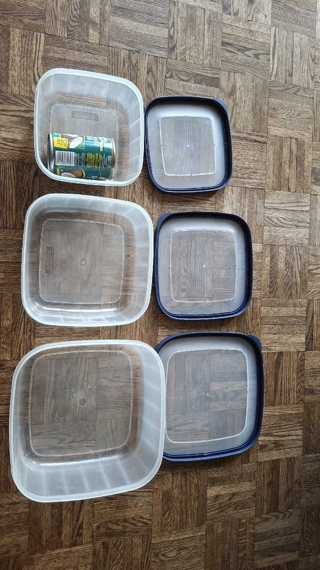 These used food containers are perfect for storing leftovers or packing lunches and come in assorted sizes with matching lids. They are reusable and durable. Finding good homes for these containers!