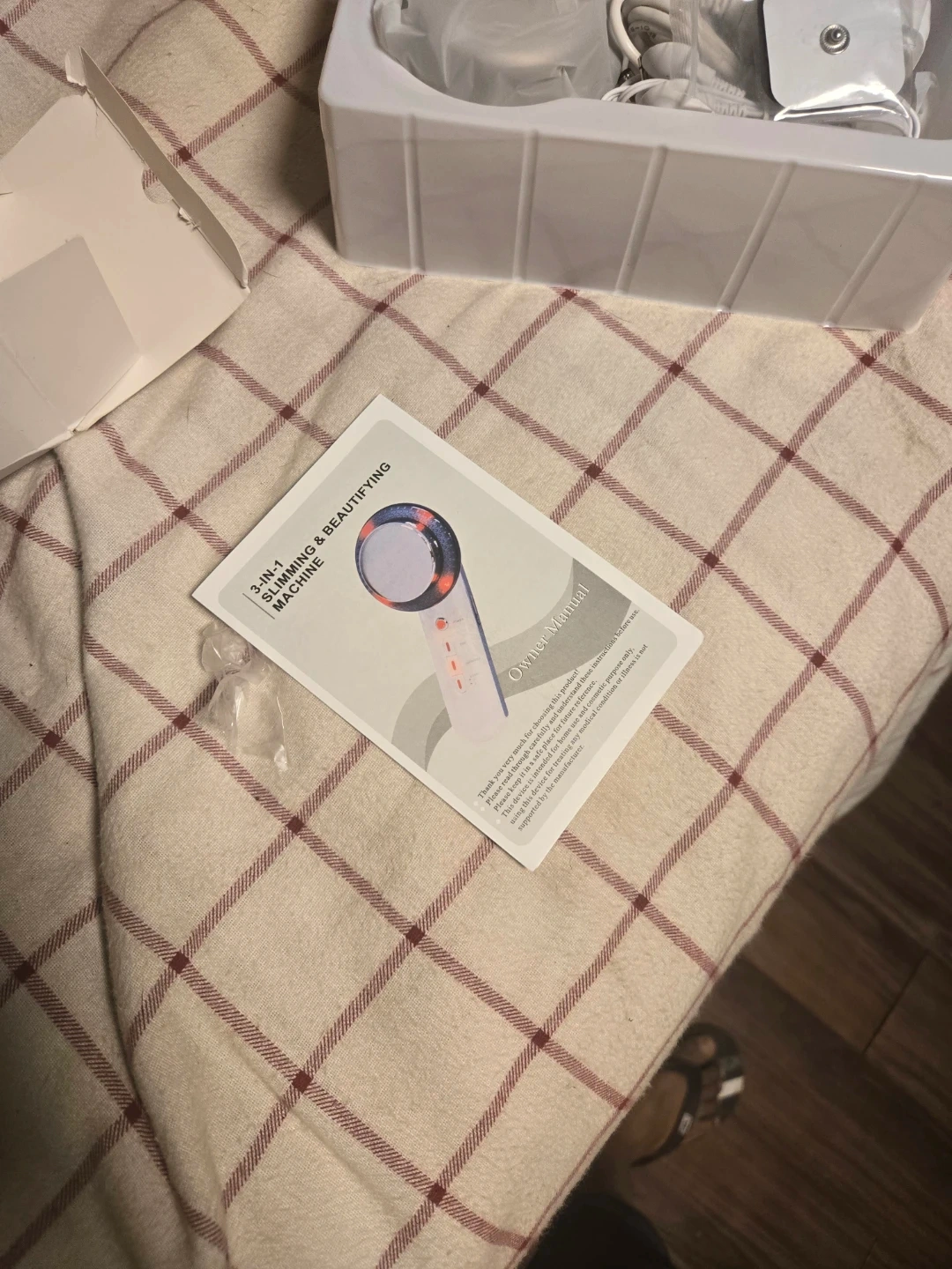 This 3-in-1 slimming and beautifying machine is designed for home use. It's a cosmetic device intended for personal care. This item includes its owner's manual.