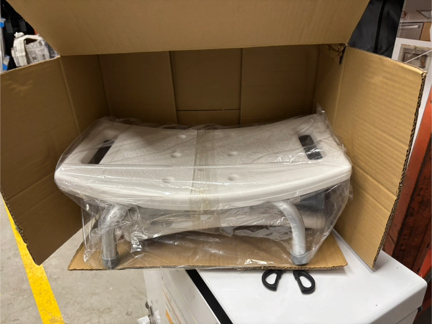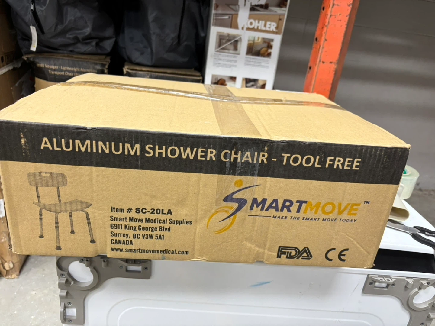 This is a new SmartMove aluminum shower chair. It's a tool-free assembly design. It's designed for stability and ease of use in the shower.