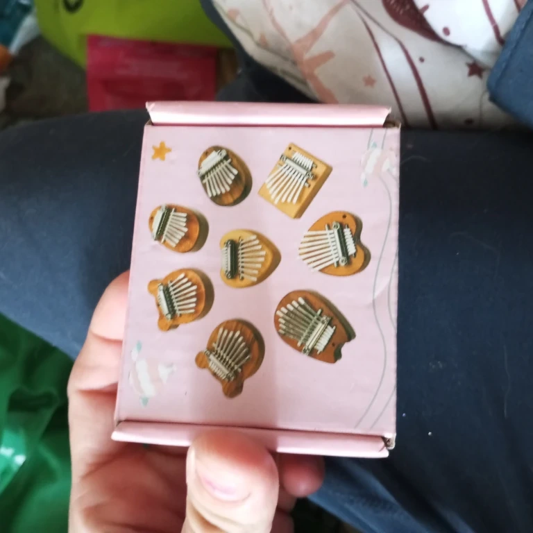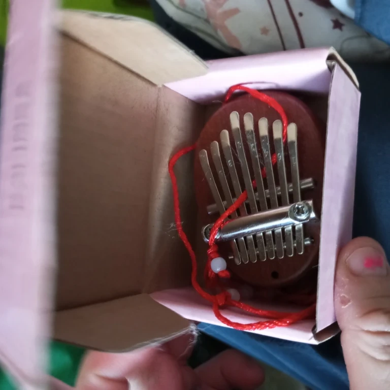 This is a mini Kalimba thumb piano. It's made of wood and metal