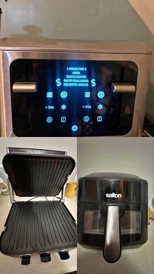 Selling a kitchen appliance bundle that includes: Cuisinart digital 4-slice toaster, Panini / sandwich press grill, and a Salton air fryer. Everything works completely good. All items are in good working condition. Perfect for a new home, apartment, or student setup. Selling as a bundle for a discounted price because I don’t need it anymore.
