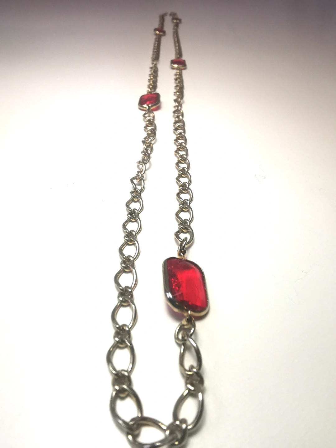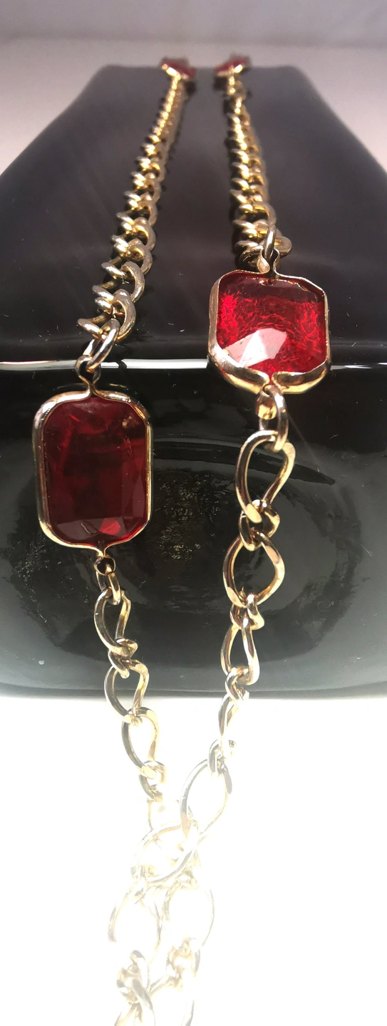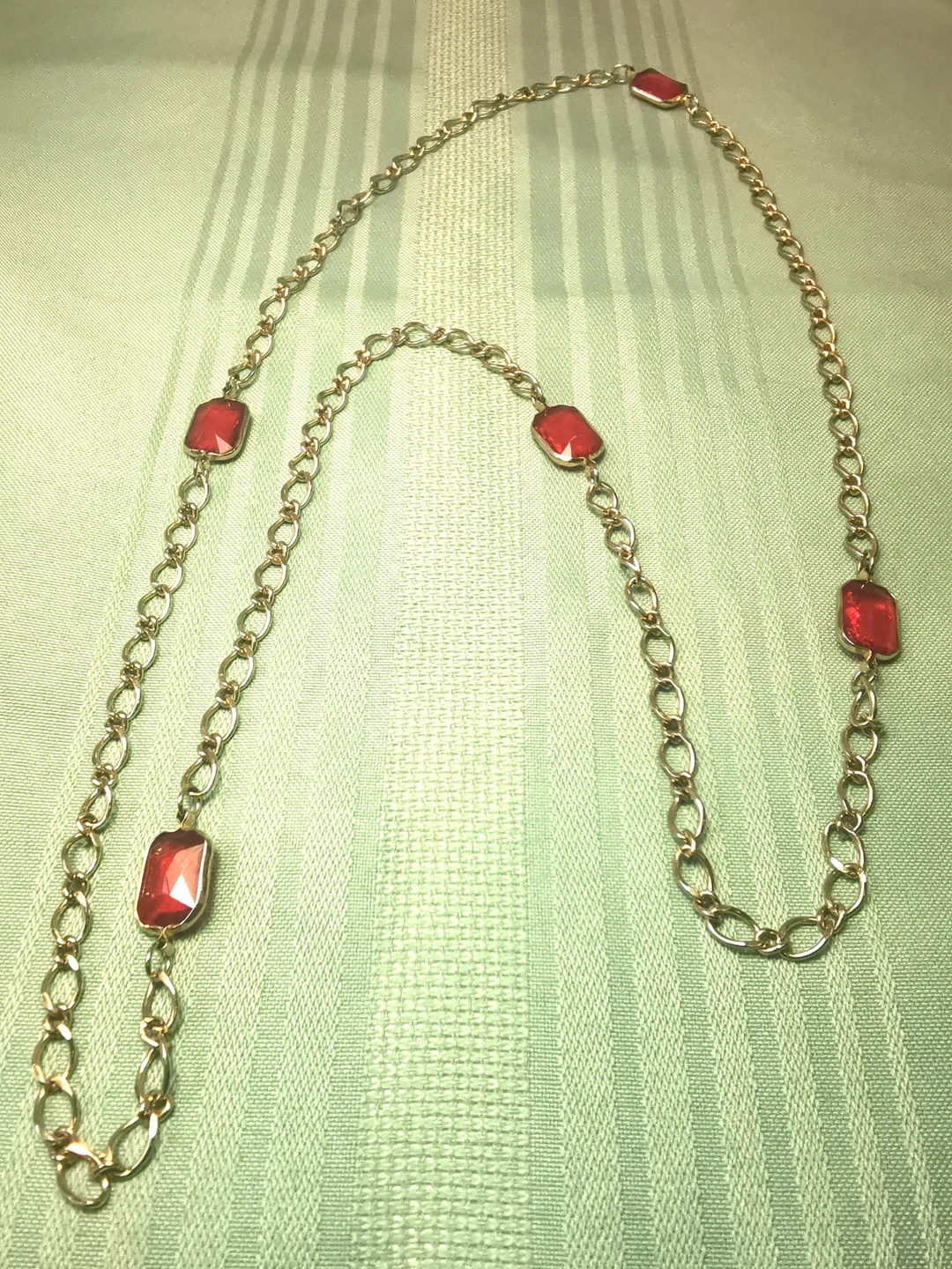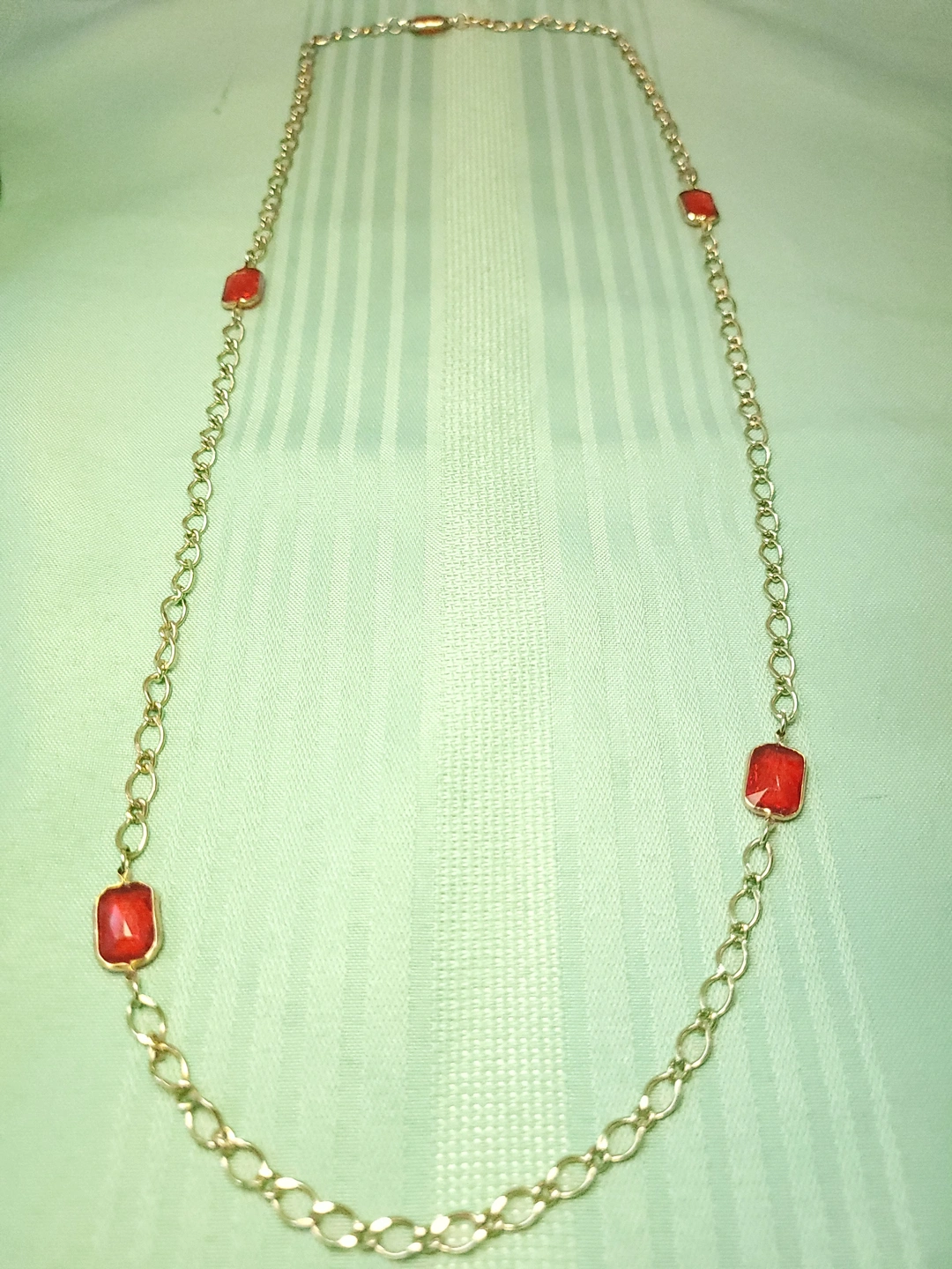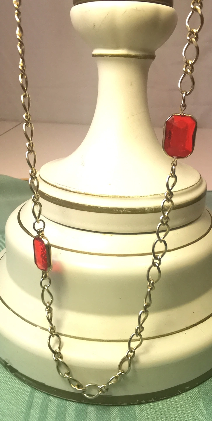 Circa 1978 Gold Tone Red Glass Station Necklace 17" Continuous
