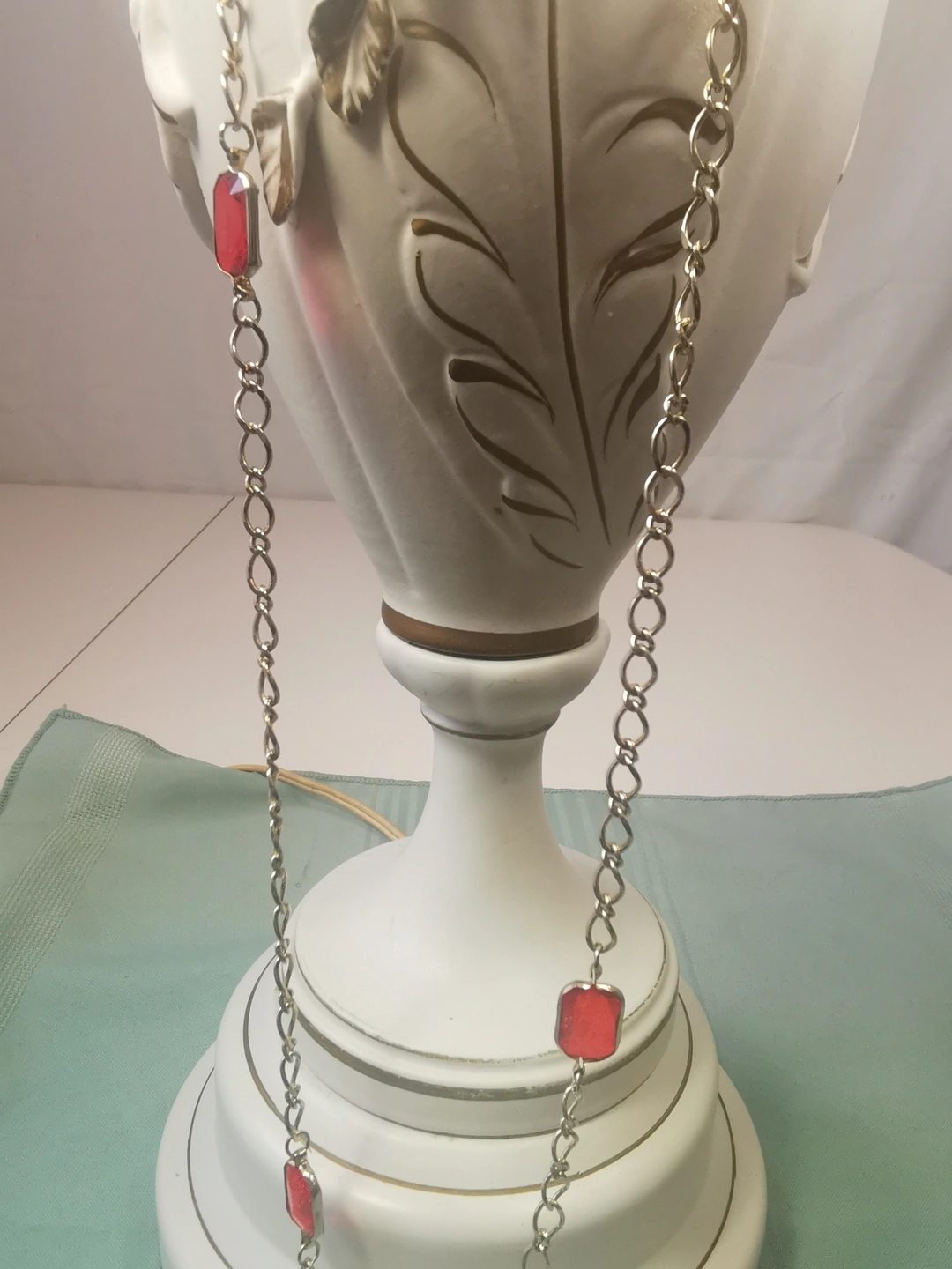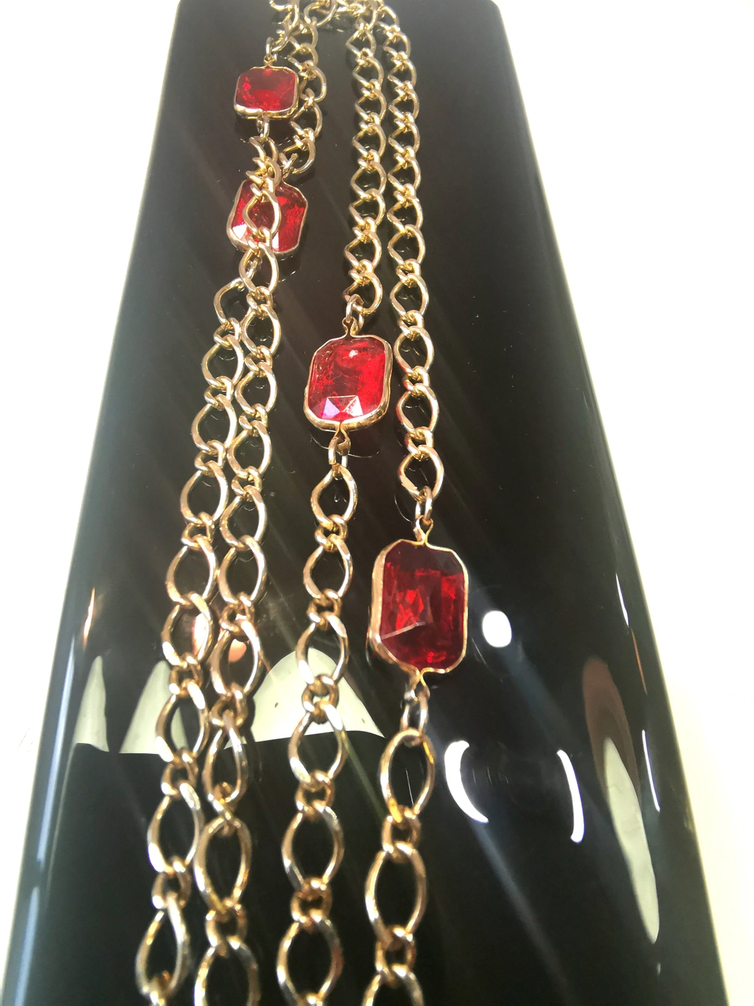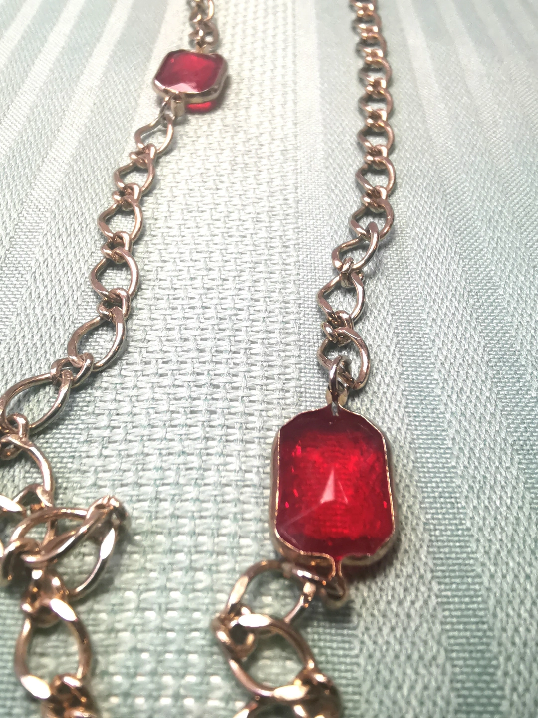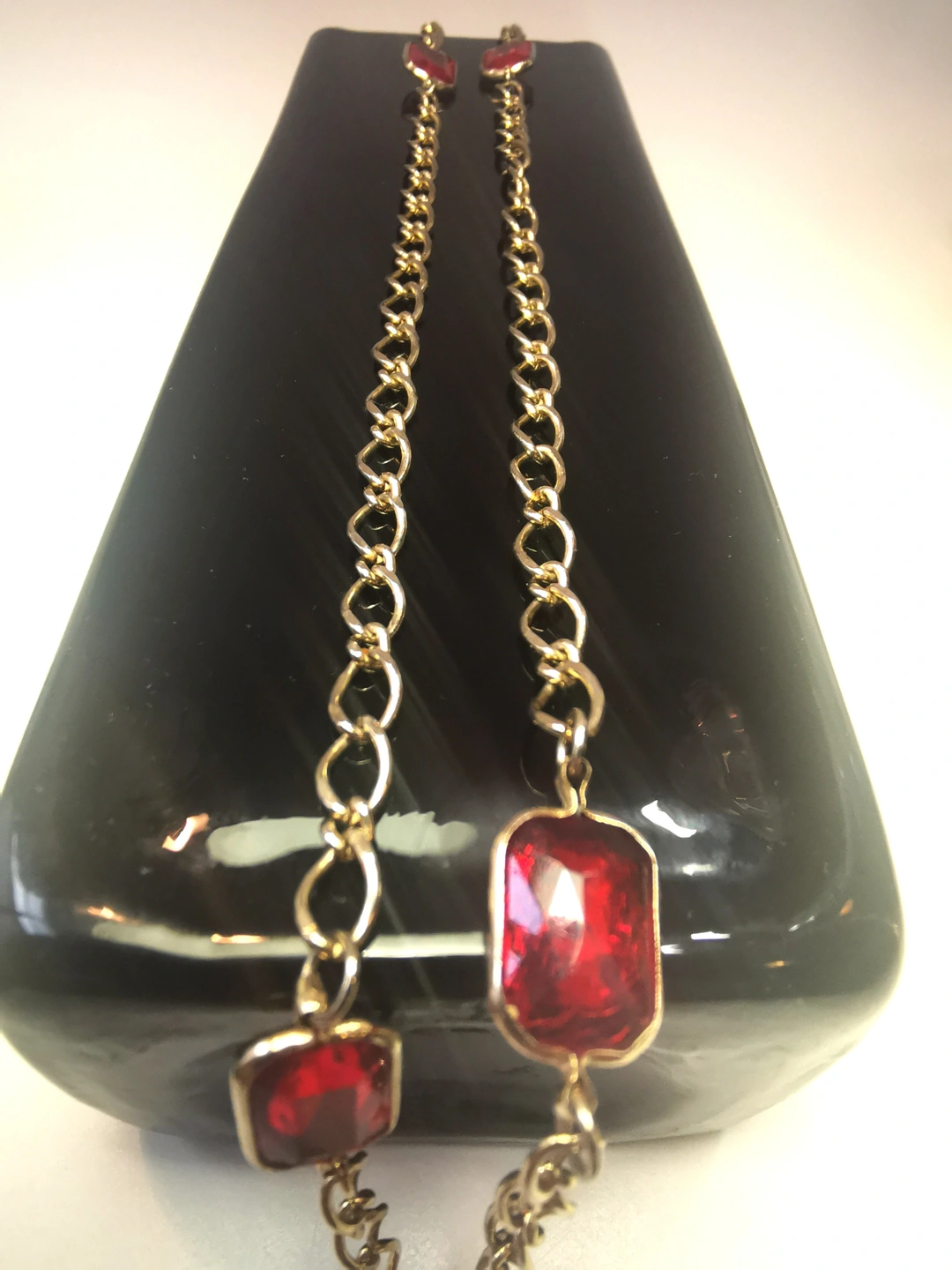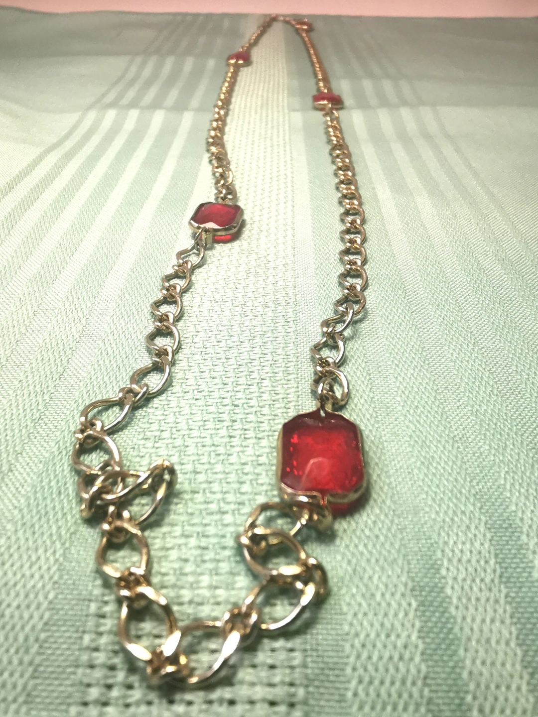 Circa 1978 Gold Tone Red Glass Station Necklace 17" Continuous