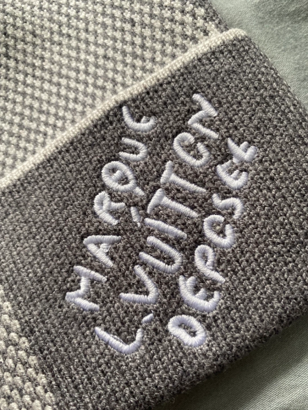 Stylish Louis Vuitton beanie hat. Features the iconic Damier pattern in grey and white. Includes the original dust bag. Made from a comfortable knit material.