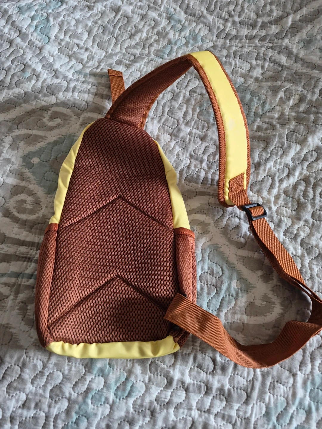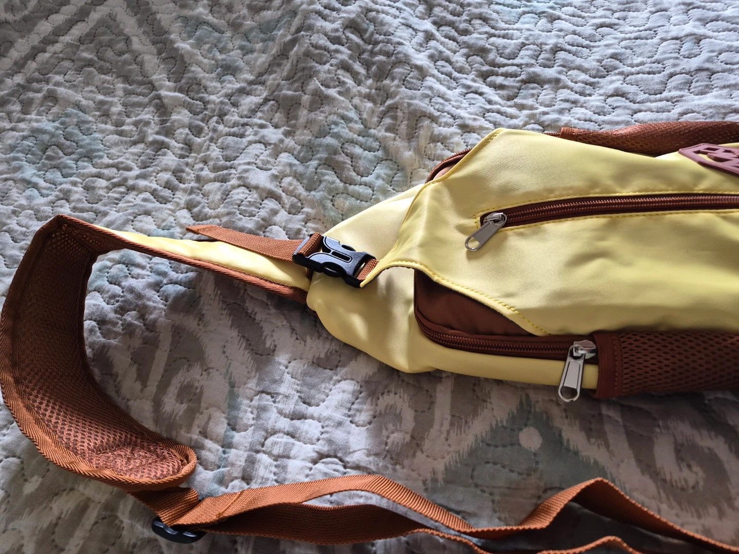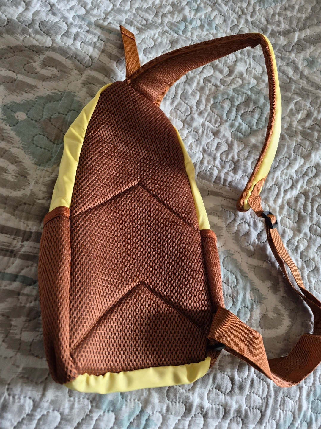 Mankar Yellow & Brown Sling Backpack Purse, Durable Nylon, Multiple Pockets, Buckle Closure Adjustable Straps Brand Bew without Tags