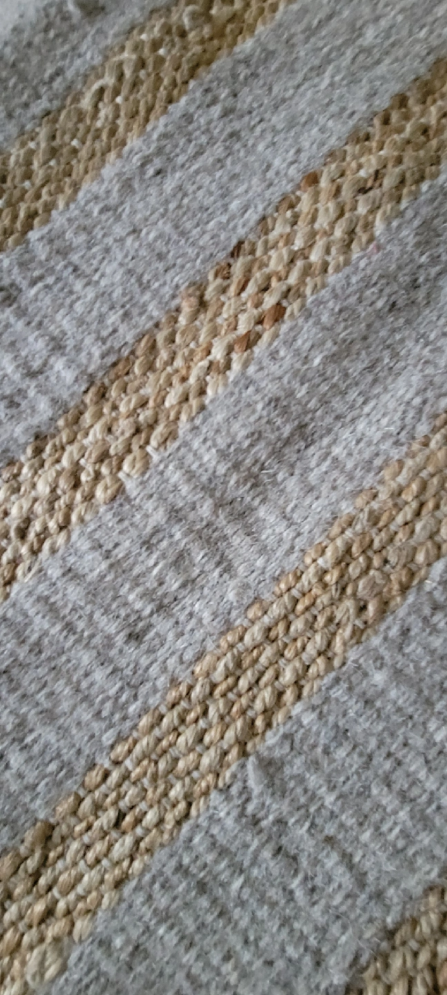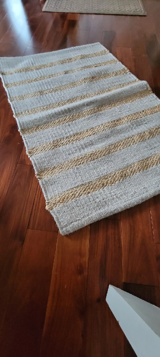 75Selling a Kehler accent rug in oatmeal/natural colour. It's sized at 24" x 36" (2' x 3'). The rug is made of 45% jute, 35% wool, and 10% cotton. It's handmade and spot clean only. Originally bought for $49!