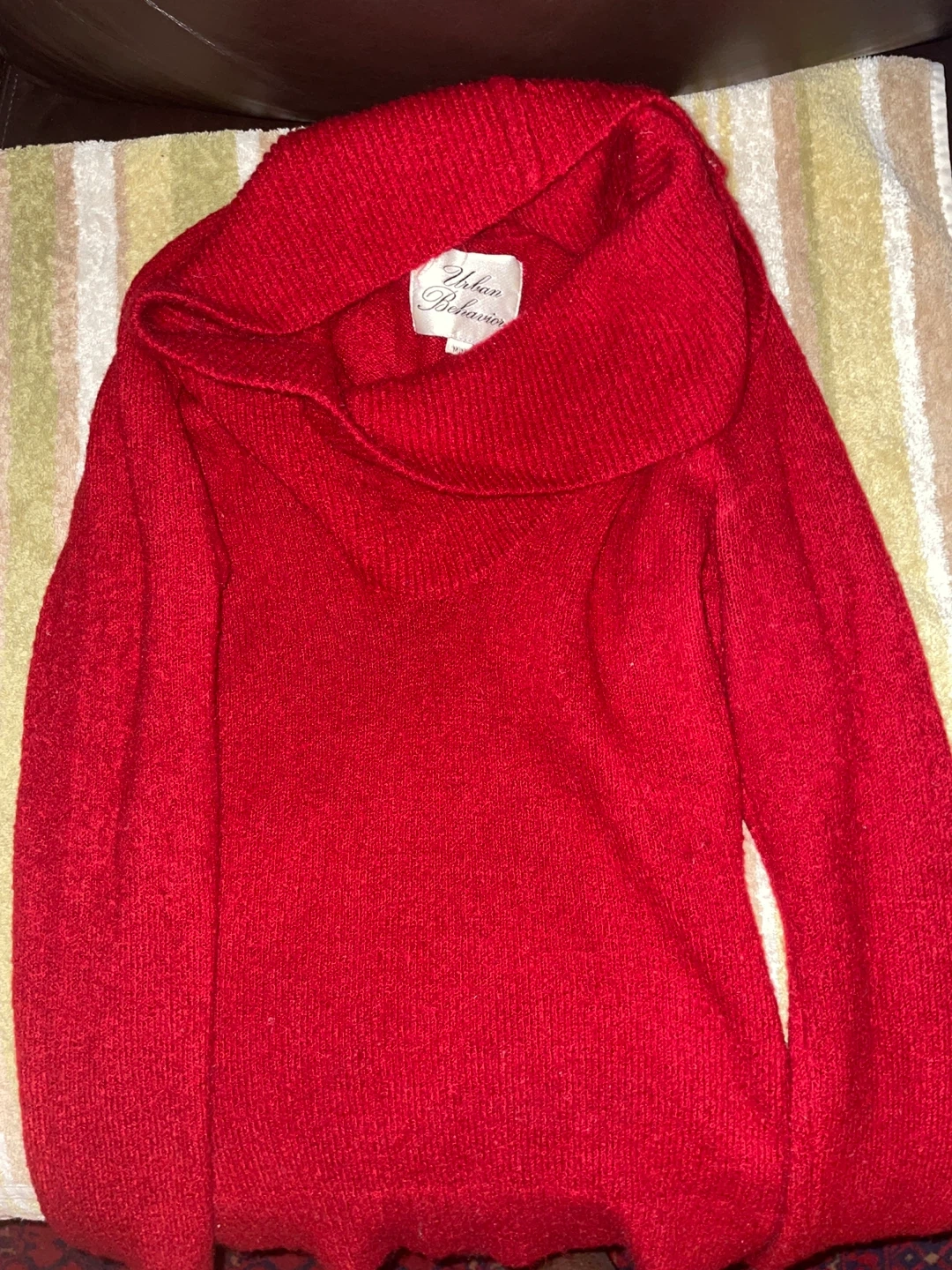 Cozy up in this lovely red cowl neck sweater from Urban Behavior! It's perfect for the cooler weather and adds a pop of colour to any outfit