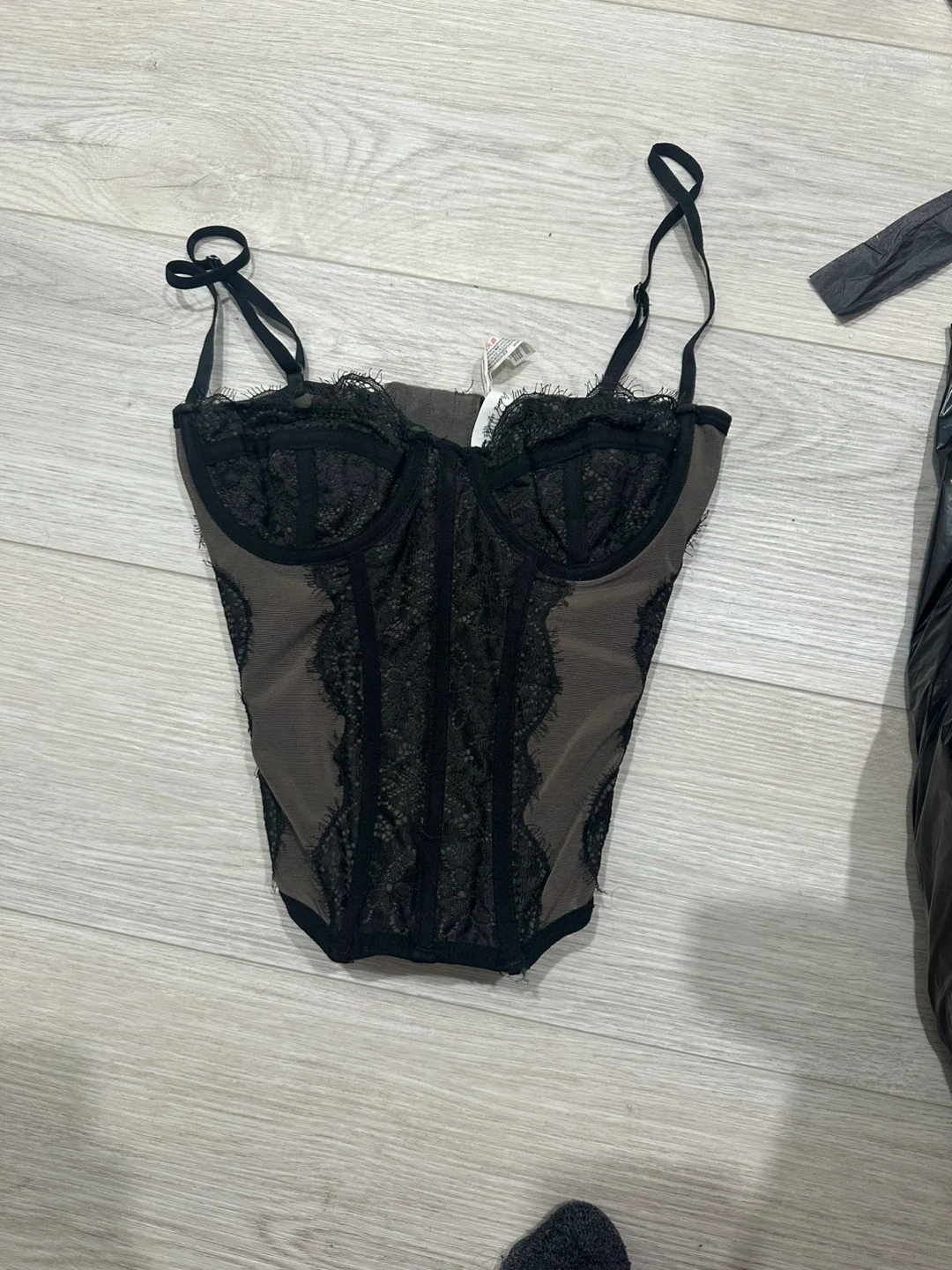 Selling urban outfitters corset in size small. It features a beautiful black lace design and is in great condition! Perfect for layering or wearing on its own