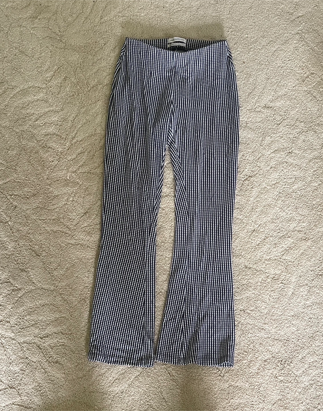 10These are a pair of black and white checkered kick-flare pants from Urban Outfitters. Slightly worn.