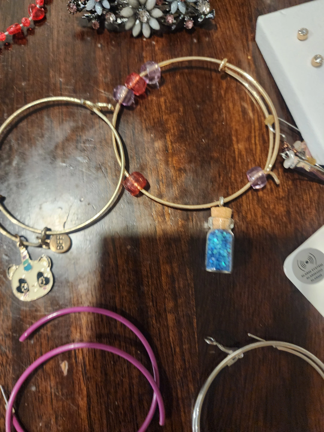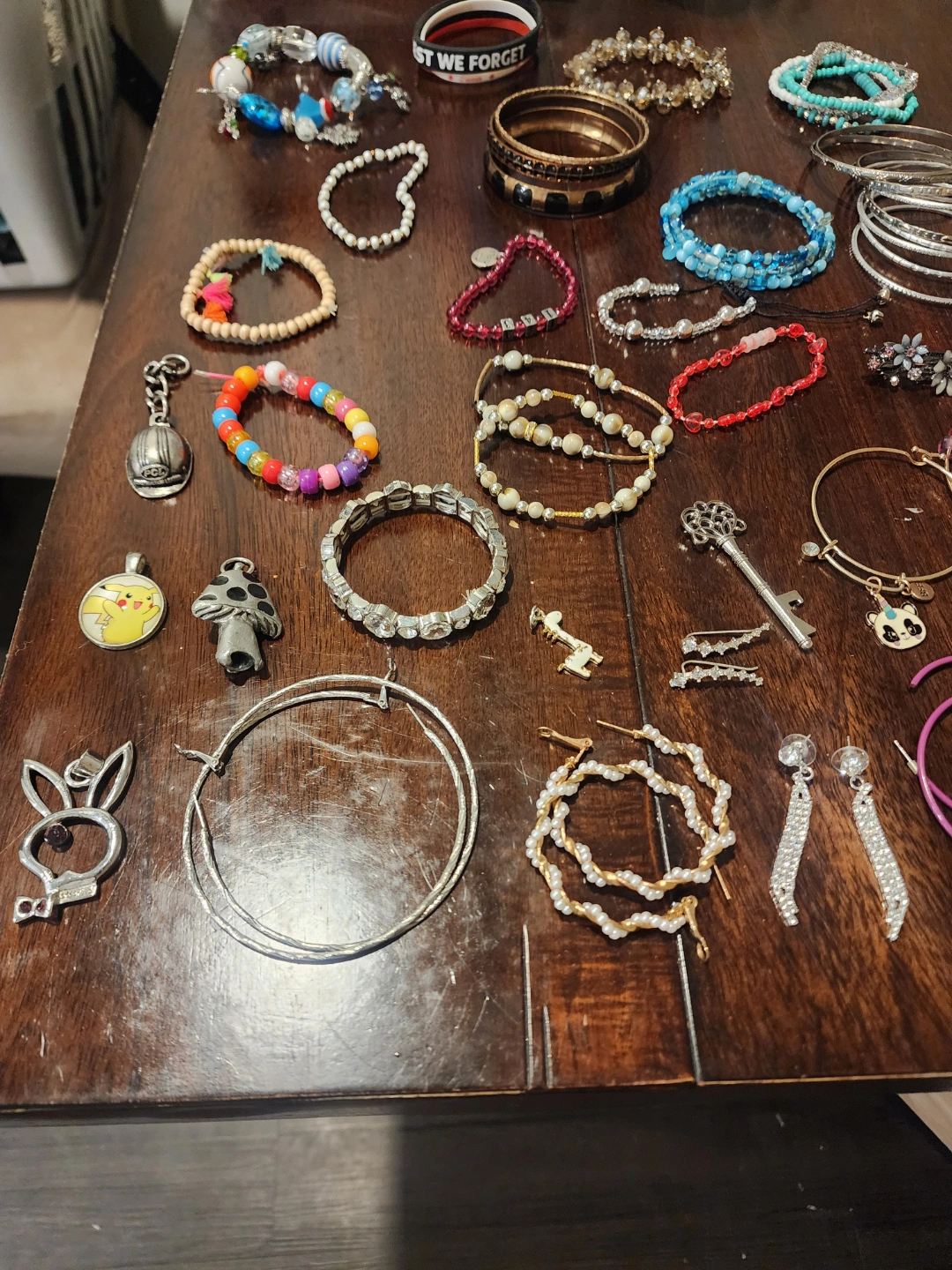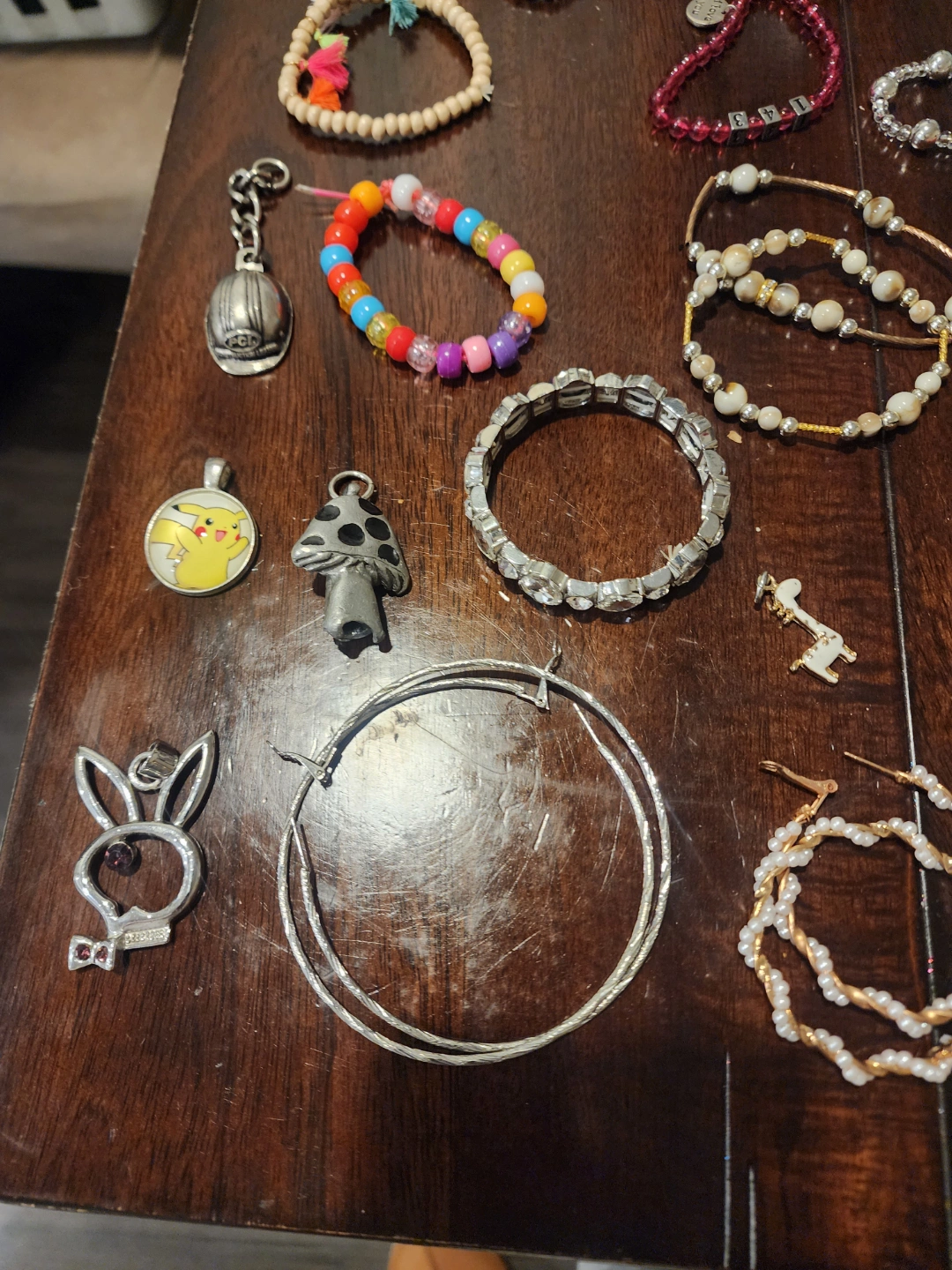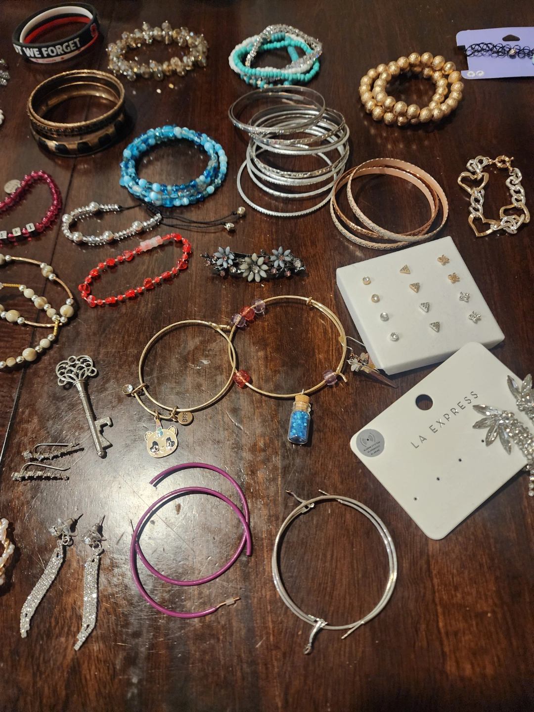 Various bracelets, earrings, charms, and necklaces. A great way to add some flair to your wardrobe and feel your best.