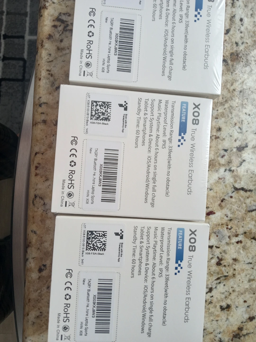 Brand new TAGRY X08 true wireless earbuds. Each box includes the earbuds and charging case. They offer up to 6 hours of music playtime and have an IPX5 water resistance rating. Supports iOS/Android/Windows devices. Standby time is 60 hours.