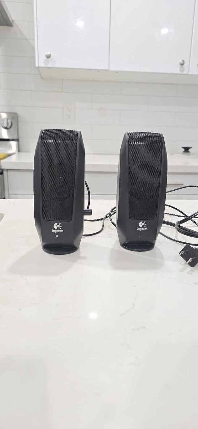 Add some sound to your setup with these Logitech S120 2.0 stereo speakers in black. This set of used speakers is in good working condition, perfect for your desktop or laptop. Specifications: Brand: Logitech Model: S120 Type: 2.0 Stereo Speakers Colour: Black Connectivity: 3.5mm audio jack Power: AC Power. Cash accepted. Cashless payment accepted.