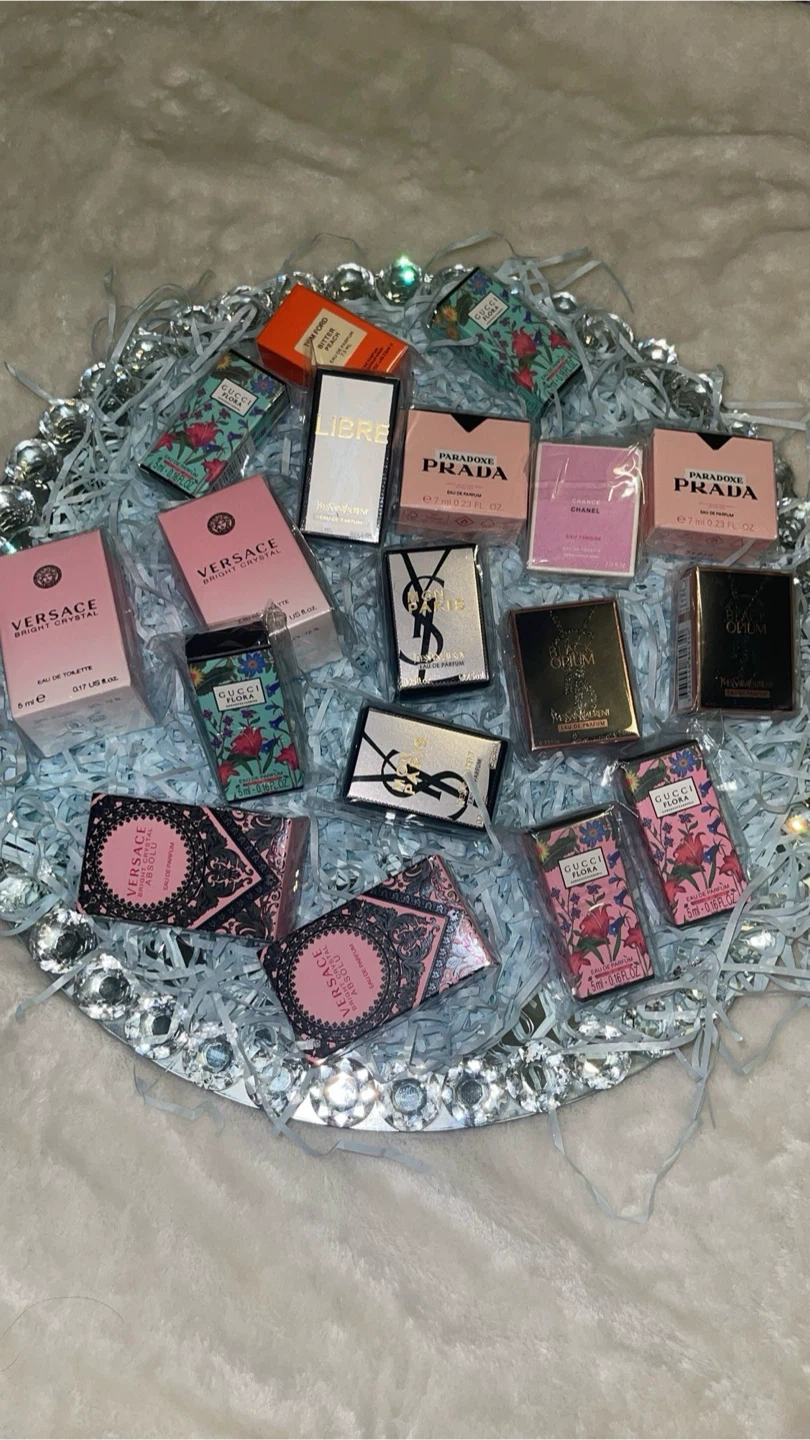 This collection features a variety of miniature perfumes from popular designer brands. Each small bottle is perfect for trying different scents or for travel. It's a great way to explore various fragrances! β¨ Luxury Mini Perfumes Available β¨
