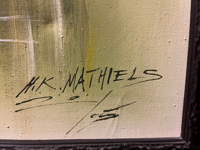 Buy & SellHk Mathiels renowned artistHk Mathiels renowned artist$81Original oil on canvas by Hk Mathiels, renowned artist. Highly collectable. See photos. Purchased at an estate sale.WHERE TO MEETCheck LocationView MapSELLERSueBallantrae100 reviews0 chats·1 favorites·6 viewsSEND CHAT TO SELLERHi Sue! I’m interested in your listing.Hi Sue! I’m interested in your listing.Get the Karrot app to chatSign In to chat