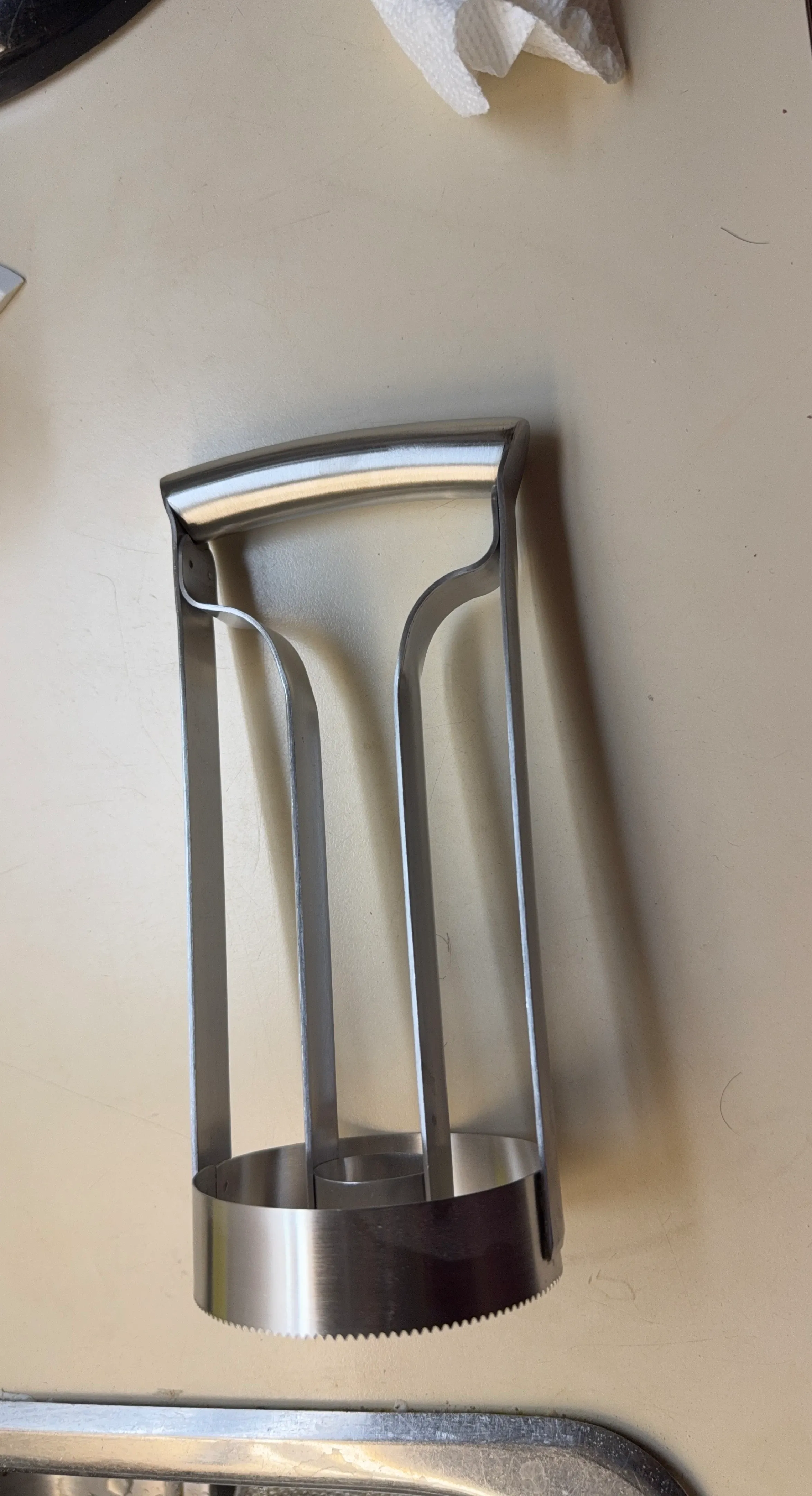 Stainless steel apple corer for sale! This handy kitchen tool makes quick work of coring apples for pies, snacks, or canning. It's in great condition and ready for a new kitchen.