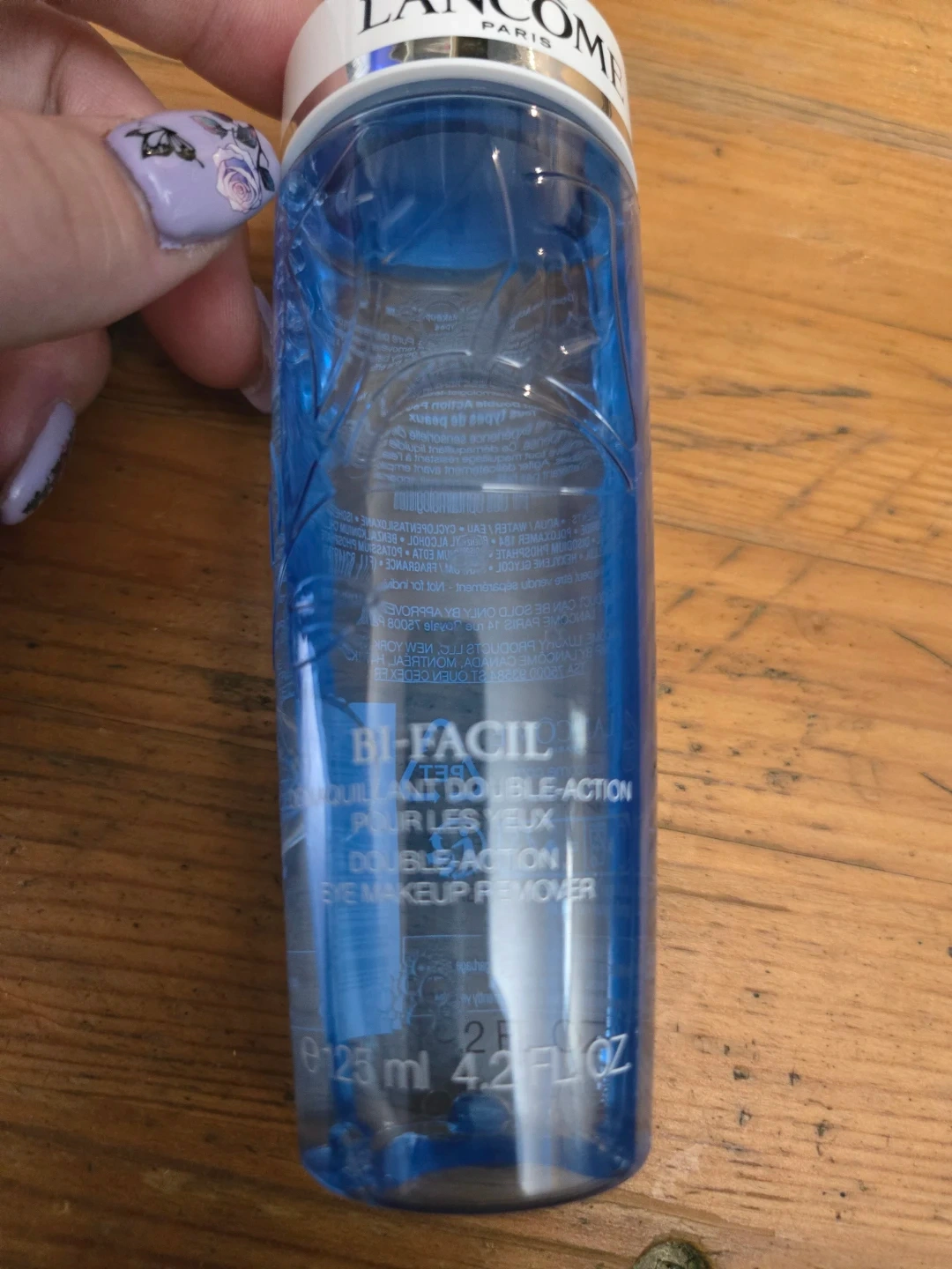 Lancôme Bi-Facil Double-Action Eye Makeup Remover. This gentle formula effectively removes all types of eye makeup, even waterproof. 125 ml bottle.