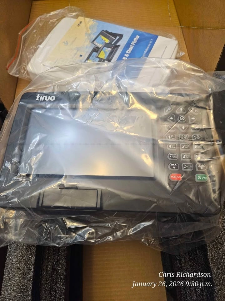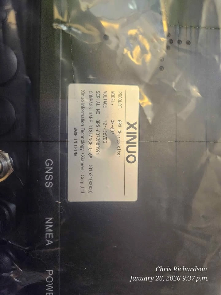 Brand new in box XINUO 7 Inch Marine GPS Chart Plotter GNSS XF-607. This GNSS chart plotter supports BDS, GPS dual-mode high-precision positioning. Features a 7-inch color LCD with 800 x 480 resolution, high brightness, and wide angle of view. It has a Classic & Utility dual operating system, built-in BDS/GPS dual-mode positioning, and supports multiple display pages. Can connect to a mobile network for online software upgrades and has intelligent voice broadcasting for operations and alarms. Supports multiple languages. Technical Specifications: Display Unit XF-607, Color TFT LCD, 7 inch, 800 × 480 pixels, 500cd/㎡ brightness. Supports Standard View, Pure View, Simple View, AIS Data, Sailing Data, GNSS, 3D Navigation, Compass display modes. Capacity for 50,000 waypoints/markers, 500 routes, 1000 tracks. Interface includes 2 Ports NMEA0183 Output and 2 Ports NMEA0183 Input. Wi-Fi 802.11 b/g/n. Power Supply DC10V~36V, Power Consumption 8W. GNSS Receiver 72 channels. Accuracy GPS&BDS 2.5m. Never been used. Asking $450.