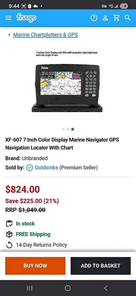 Brand new in box XINUO 7 Inch Marine GPS Chart Plotter GNSS XF-607. This GNSS chart plotter supports BDS, GPS dual-mode high-precision positioning. Features a 7-inch color LCD with 800 x 480 resolution, high brightness, and wide angle of view. It has a Classic & Utility dual operating system, built-in BDS/GPS dual-mode positioning, and supports multiple display pages. Can connect to a mobile network for online software upgrades and has intelligent voice broadcasting for operations and alarms. Supports multiple languages. Technical Specifications: Display Unit XF-607, Color TFT LCD, 7 inch, 800 × 480 pixels, 500cd/㎡ brightness. Supports Standard View, Pure View, Simple View, AIS Data, Sailing Data, GNSS, 3D Navigation, Compass display modes. Capacity for 50,000 waypoints/markers, 500 routes, 1000 tracks. Interface includes 2 Ports NMEA0183 Output and 2 Ports NMEA0183 Input. Wi-Fi 802.11 b/g/n. Power Supply DC10V~36V, Power Consumption 8W. GNSS Receiver 72 channels. Accuracy GPS&BDS 2.5m. Never been used. Asking $450.