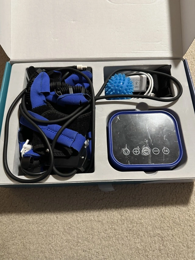 Rehabilitation robot gloves for hand flexibility training, promoting blood circulation and solving hand stiffness. Suitable for both left and right hands. Comes with all pieces and manual. Used only once, in perfect condition. Asking $200, price is firm. From a bug-free, smoke-free, pet-free home. Cash only. Pick up only in the South Pembina, Fort Richmond Area.