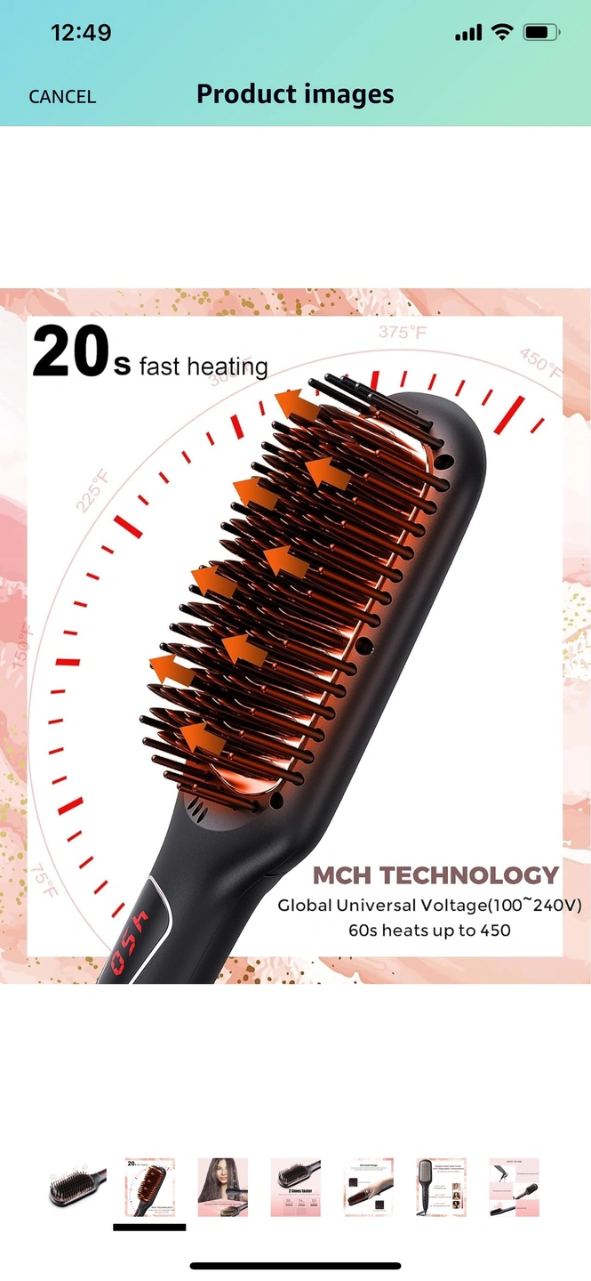 Ceramic Ionic Hair Straightener Brush for Home Salon | MCH Fast 20s Heating Tech with Auto-Off Safety | Anti-Scald with Universal Dual Voltage | Rotatable Power Cord