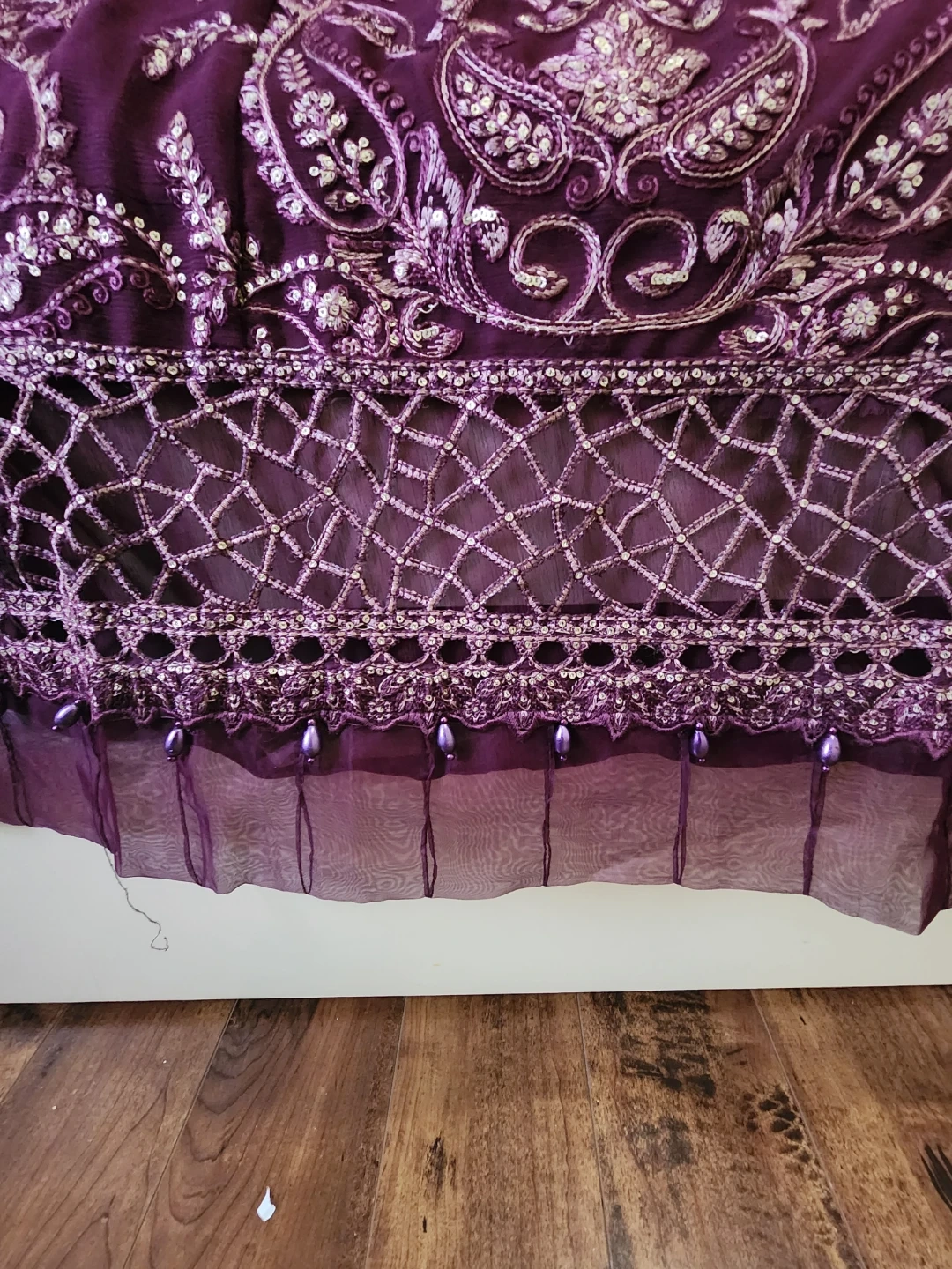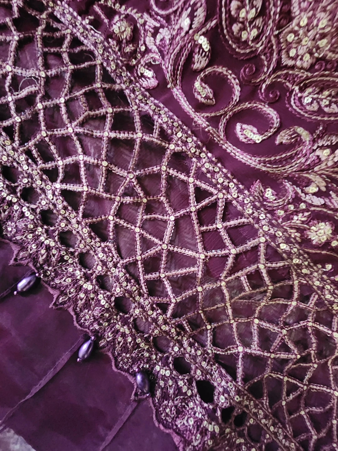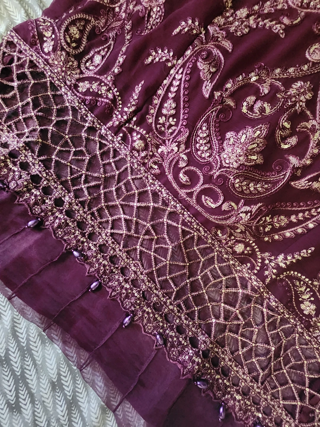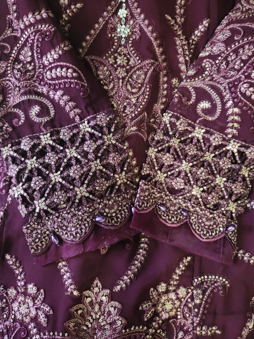 Beautiful 3 pcs suit with cutwork , pearls , sequences work and embroidered.