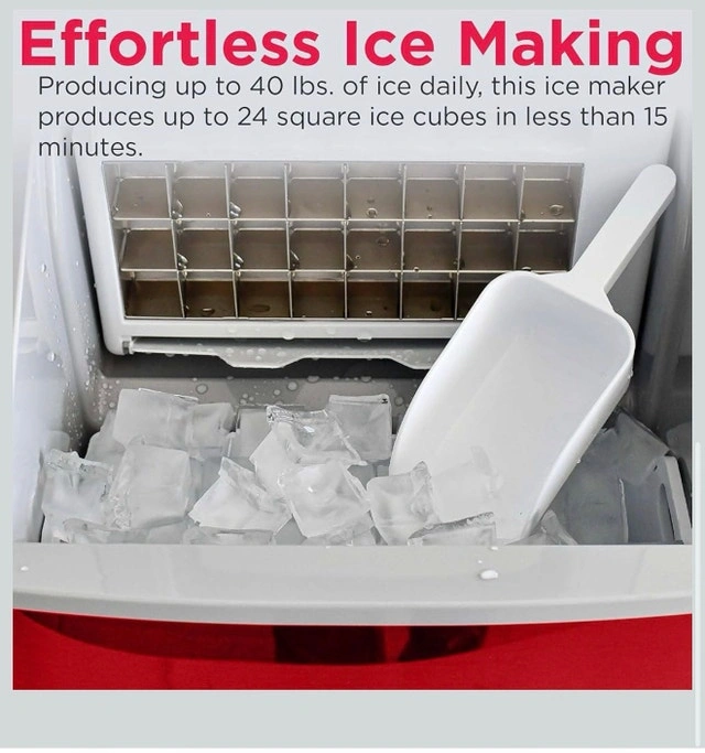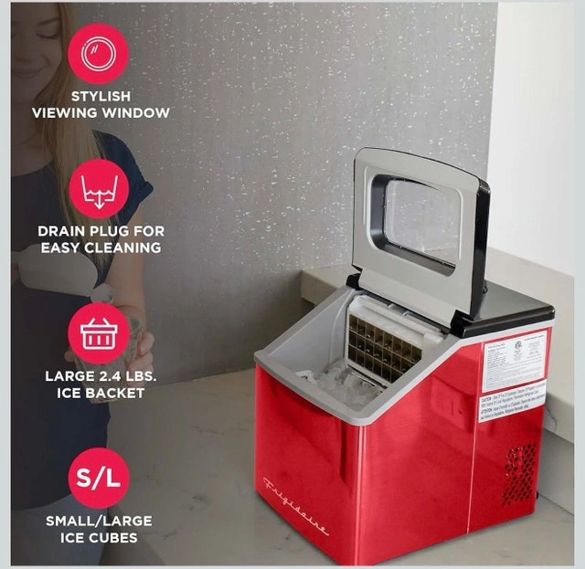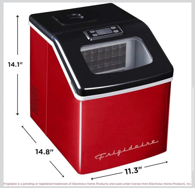Frigidaire 40lbs Compact Clear Square Ice Maker Red Stainless