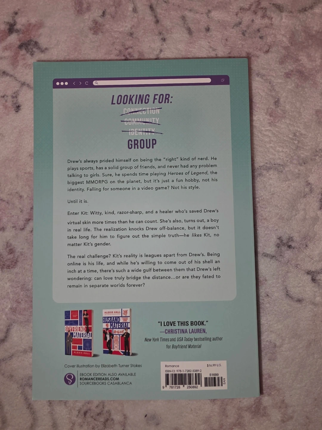 Alexis Hall's "Looking for Group" is a queer romance novel. It follows Drew, a 'right-the-kind of nerd' who finds himself falling for Kit. This book explores identity and connection in a digital age. It's a great read for fans of contemporary romance! New!