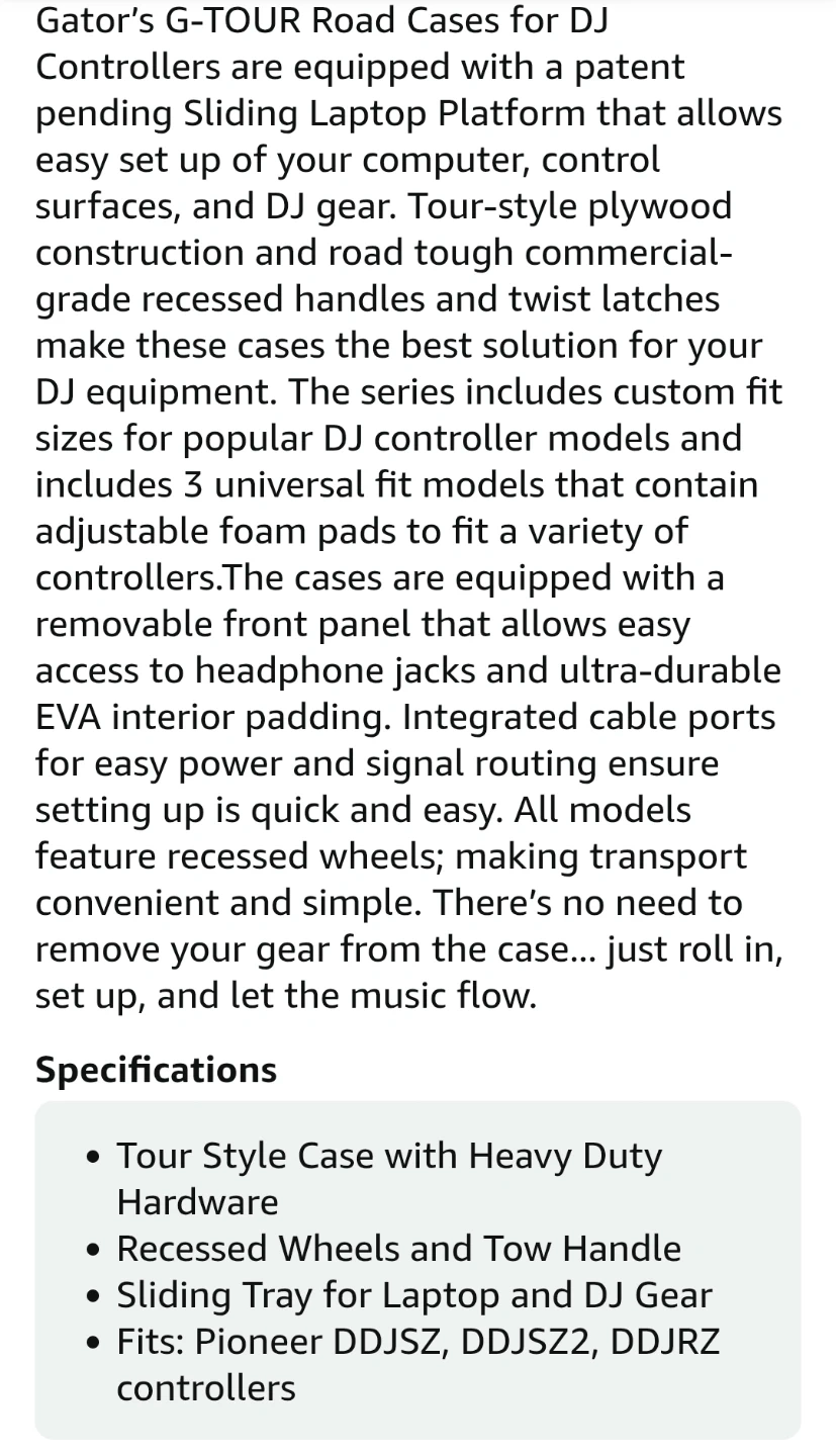 This Gator G-TOUR Series DJ controller road case, equipped with a sliding laptop platform, is designed to fit Pioneer DDJ-SZ and DDJ-RZ controllers, offering robust protection and easy setup for your DJ equipment. This item is brand new.
