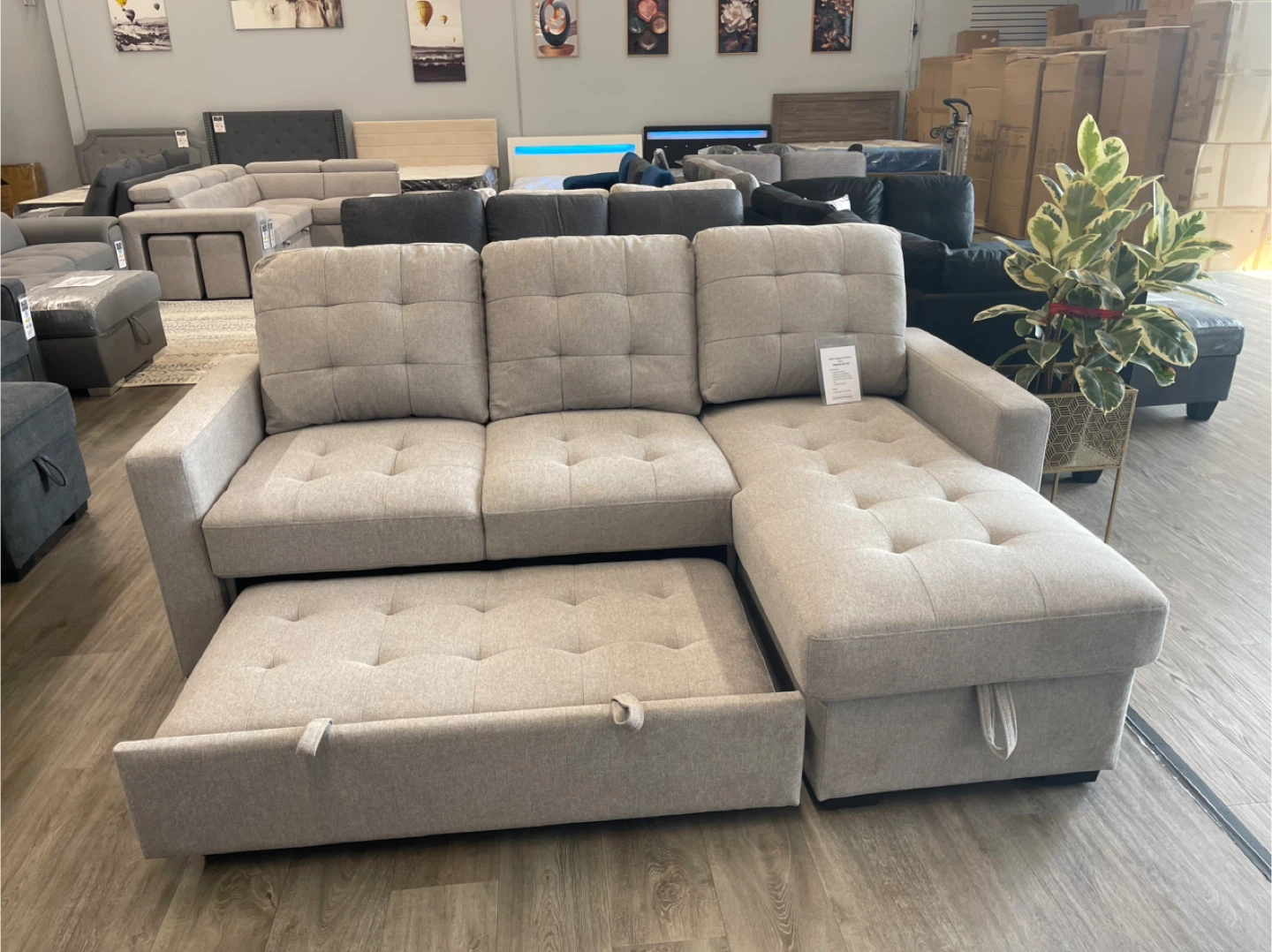 Get ready for a surprise! Our new floor model sleeper sofa is here to WOW you. 😉