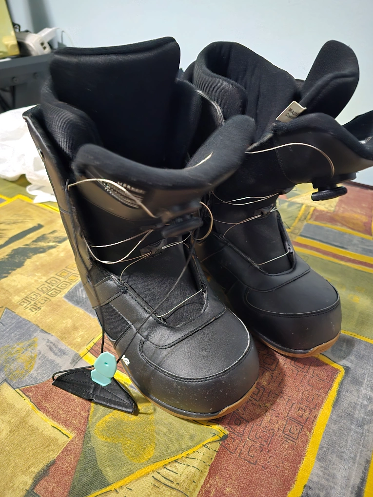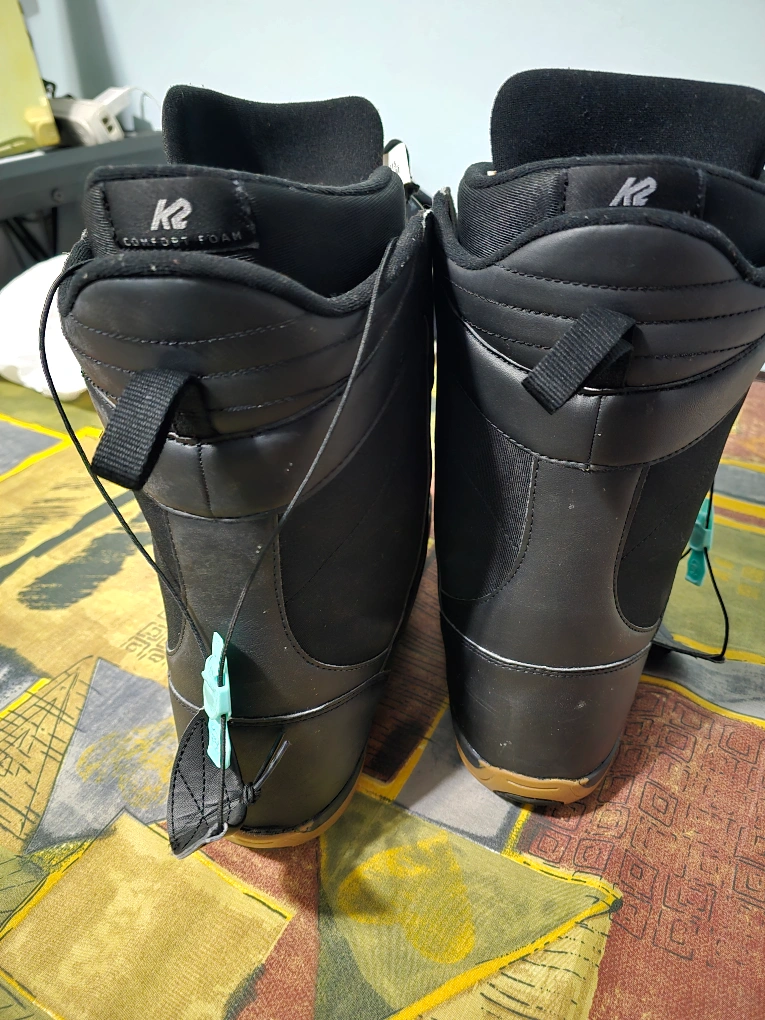 K2 "Market" snowboard boots for men. They're black and size 11 US. Features comfort foam lining and a BOA lacing system. Ready for the slopes!