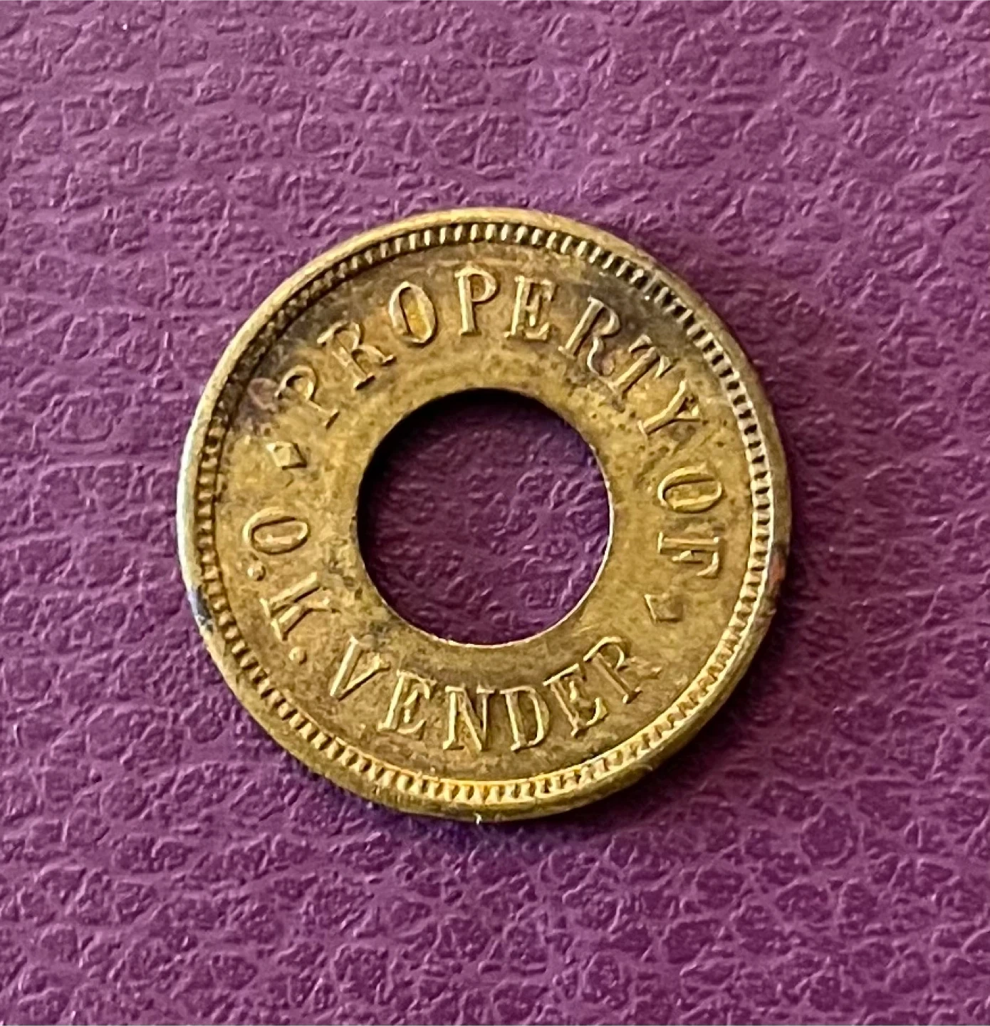 250Selling a vintage amusement token! It says "Loaned for Amusement Only" on one side and "Property of O.K. Vender" on the other. A cool piece of nostalgia!