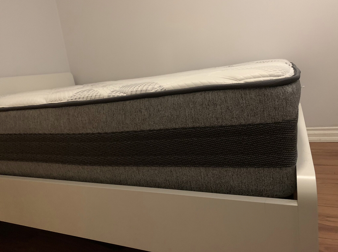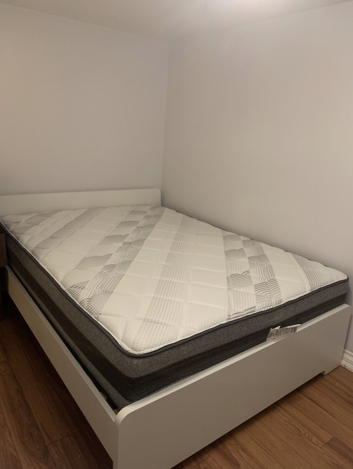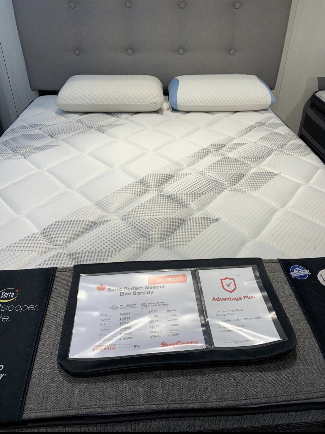 26USA Serta - Perfect Sleeper Elite Barclay Queen Size Pocket Coil Mattress with tag and under 10-year warranty. Very supporting and comfortable. Suitable for people who require high quality of sleep (originally $999+tax from SleepCountry) now $320 Used for less than two years. I do not smoke and have no pets. The mattress has always been used with a mattress protector and is in very good condition with no stains. The mattress will be wrapped for protection at no additional cost. Pickup in Scarborough. Cash only.
