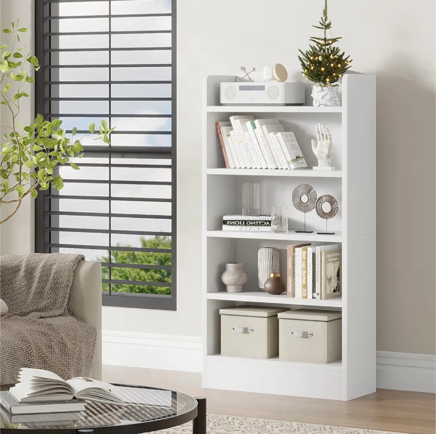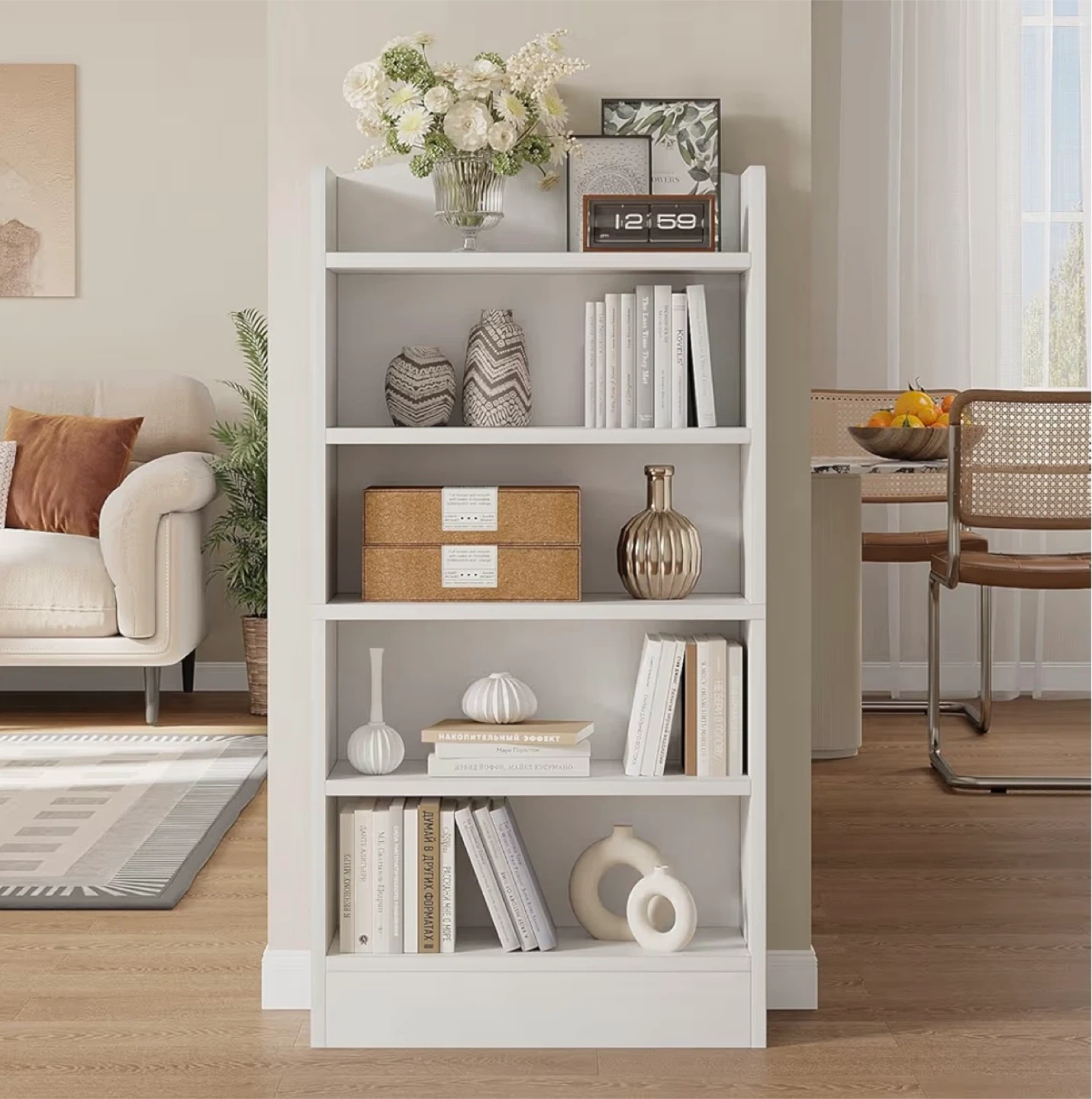 White 5-Shelf Bookshelf