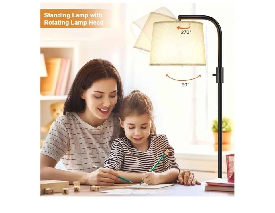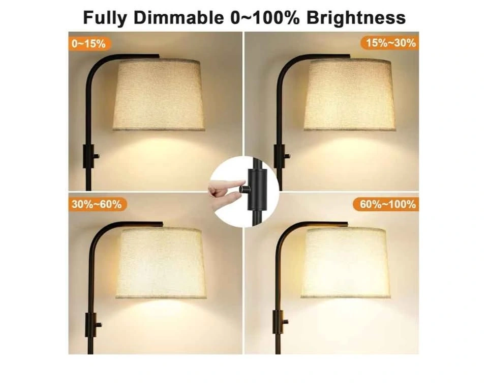 Ambimall fully dimmable floor lamp with adjustable head. Modern standing light with rotary switch. Tall lamp for bedroom, black and gray.