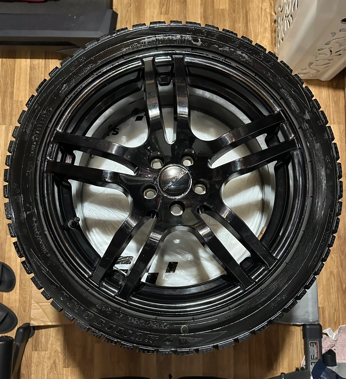 15Sumitomo Ice Edge Winter Tires Size: 215/45R17 91T Core Racing Impulse Alloy Wheels Size: 17x7.50 Bolt Pattern: 5x100 Used on 2010 Toyota Corolla XRS Only used in City Driving 1 wheel is missing a Center Hub Cap Lug nuts (12x1.5) & Hub Centric Rings included Some scratches on rims Good condition See images for details