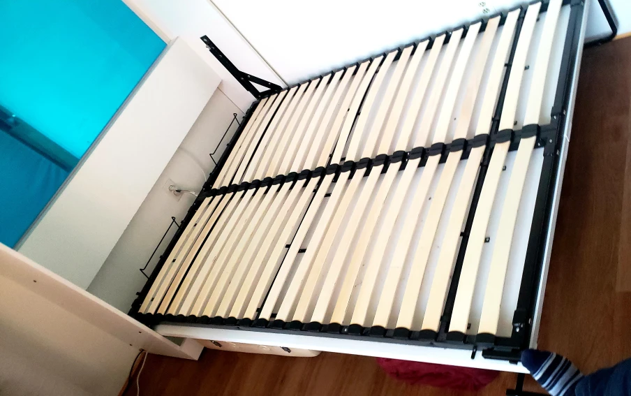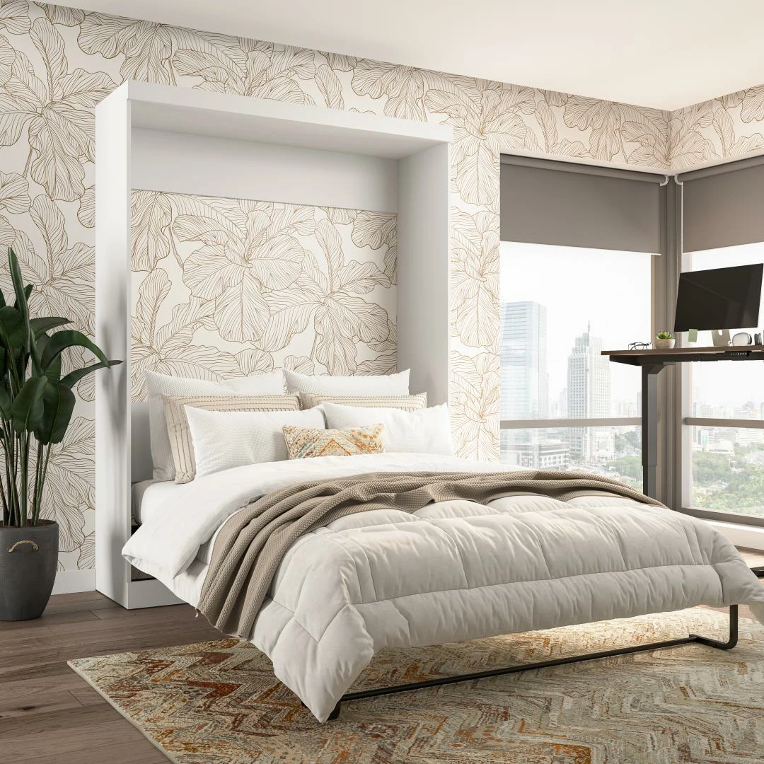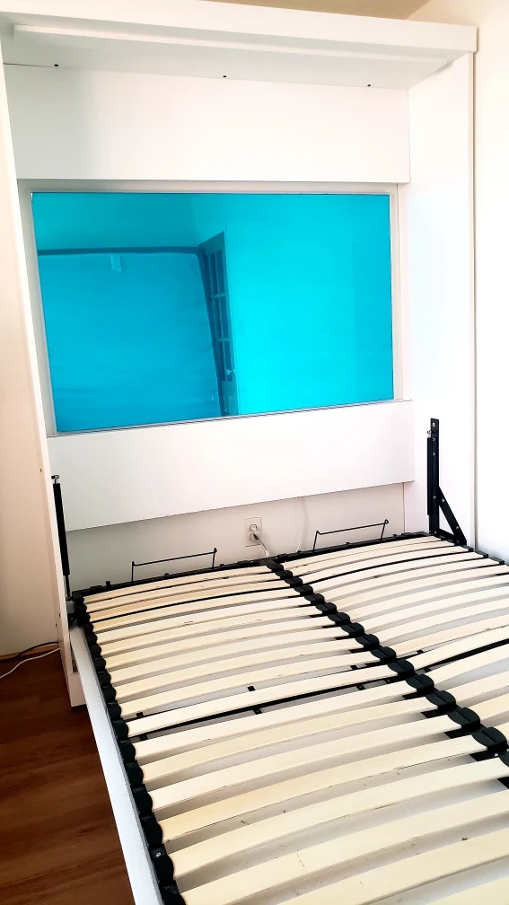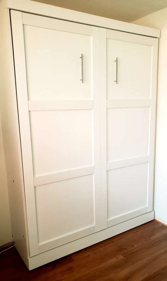 Very minor wear and tear, but in good solid condition. Only used for one year. Parts are very heavy and still assembled / secured to wall. Bought for $1800+ tax, will sell for $1000 if you come and dismantle it. Will need two people and large vehicle. Mattress and mirror not included. -- The Bestar Pur 65W Queen Murphy Bed is the ideal space saver for a multipurpose room. Easily transform your home gym or office into a guest room. The mattress support uses flexible slats that follow the curves of the body and absorb pressure for maximum comfort. The Queen Murphy bed can be used every night, and it folds up and down smoothly and quickly thanks to the dual piston system. Choose your own mattress since the bed accommodates most standard Queen mattresses (8-12 inches thick, 60-90 lb, 60 x 80 inches) and supports up to 1000 lb (including mattress). The open bed extends 92 inches from the wall. Allow a clearance of 30-36 inches around the open bed. The dual-mount wall bed mechanism attaches to the floor and wall for ease of assembly and maximum stability and durability. To avoid risk of injury, the Murphy bed must be installed to wall and floor structure by a professional or qualified person. Two people are required for assembly. Installation requires attachment to wood studs or masonry, removal of the baseboard, and drilling into the floor (if disassembly is required, holes may be covered with baseboards 0.5 inches or thicker). All necessary hardware is included. The cabinet must be anchored to a wall with a minimum ceiling height of 91.1 inches. Do not use this product for children or pets under 50 pounds (22.7 kg). North American made with globally sourced materials As seen here: https://www.bestar.ca/product/queen-wall-bed-26184/?variation=6&gclid=CjwKCAjwtuOlBhBREiwA7agf1t4284s_HGCzd6XV34Kfc7fkRVso0LaBMasmS-GvFUtFS949TXS5uxoCbP0QAvD_BwE