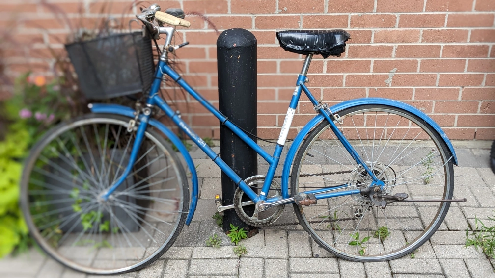 Needs some love, tires are flat, seat is covered in tape. It should be serviceable with just some new tires and/or tubes?