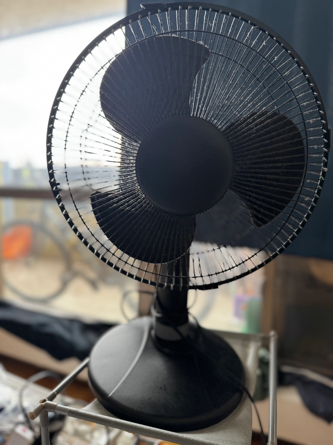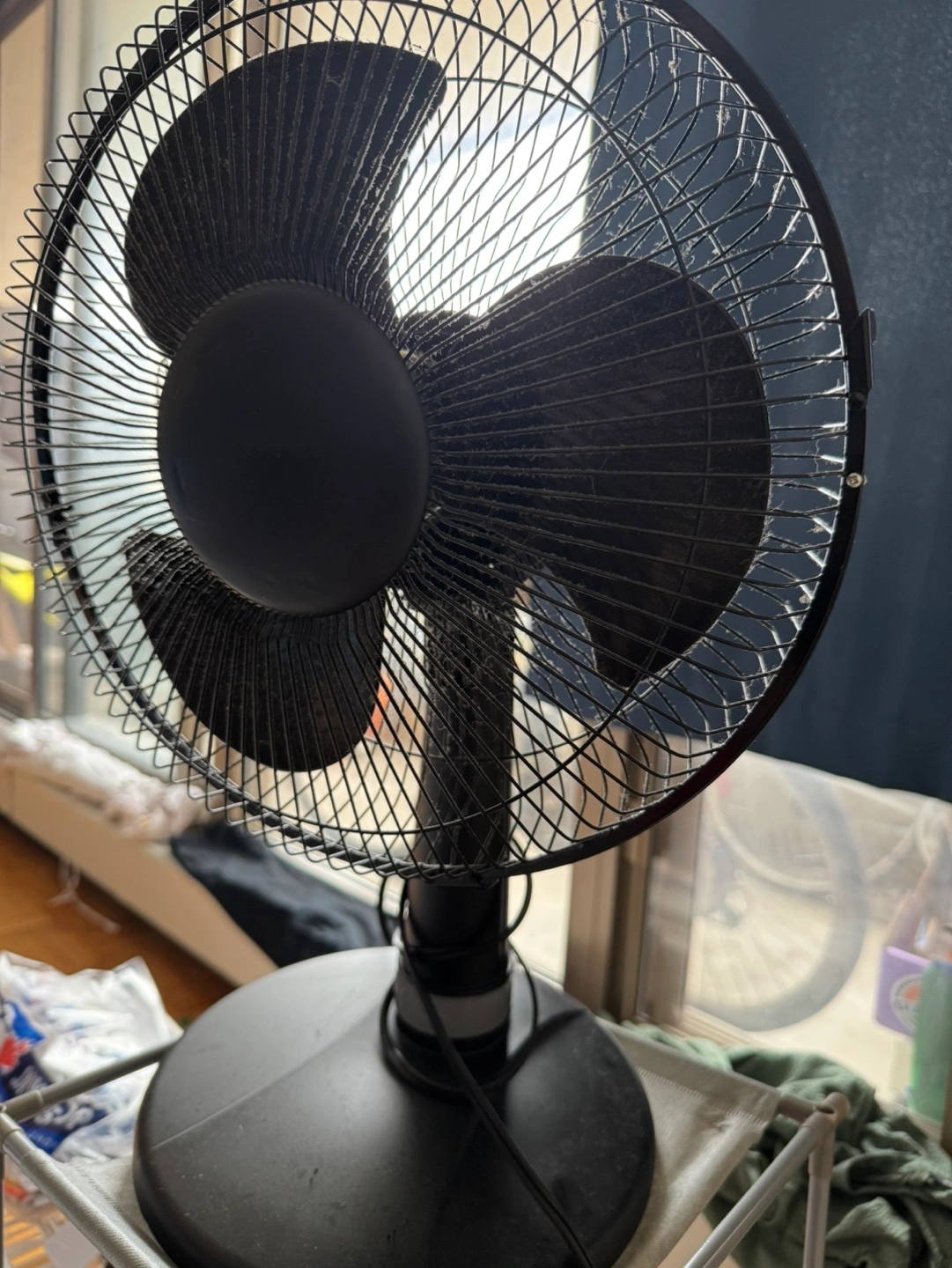 70Small black desk fan. Three blades. Good for personal use. Only 2 months used. I have to move another province. 50% less of retail price.