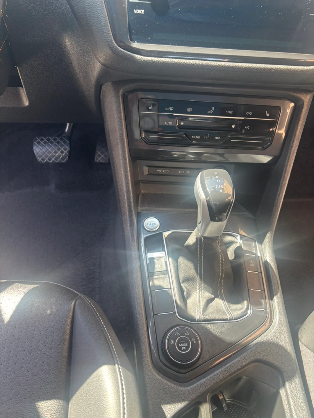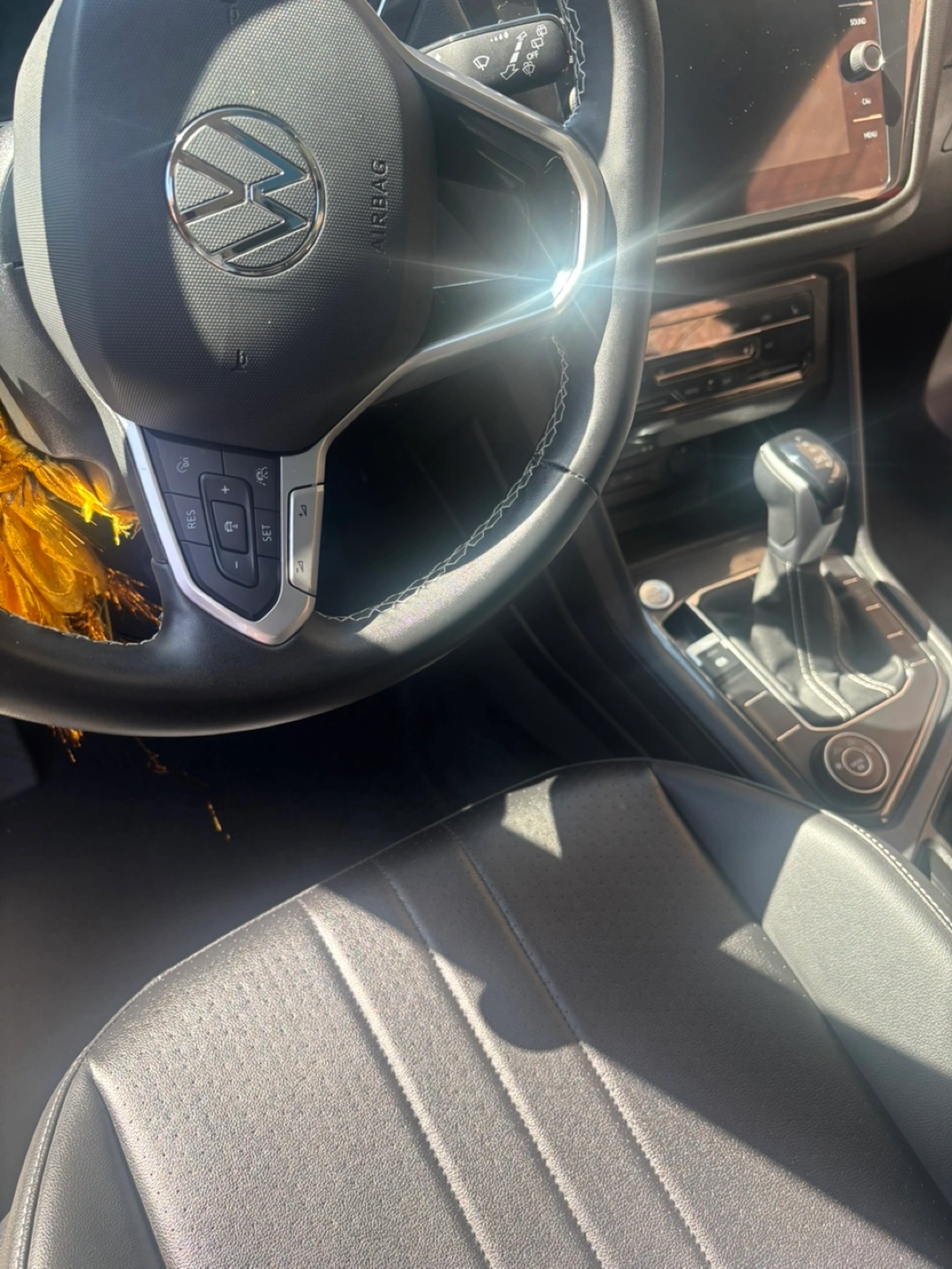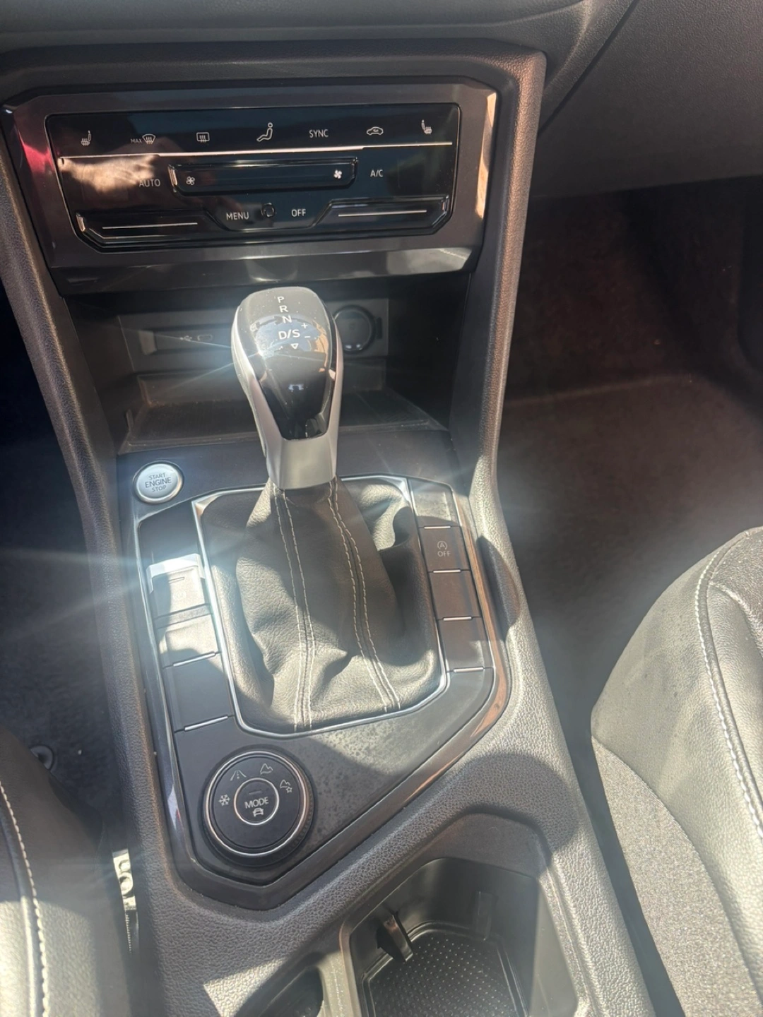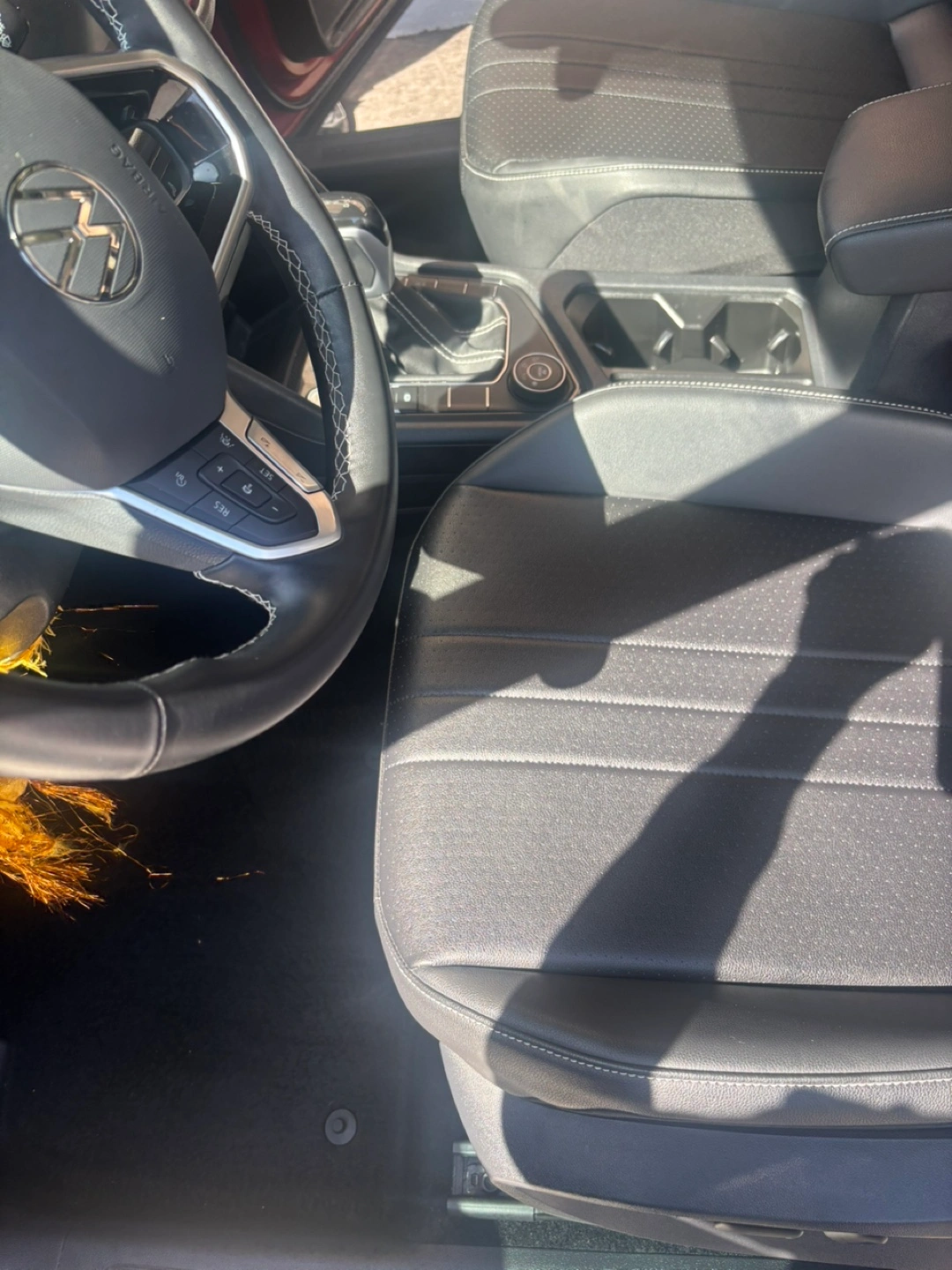5The car interior is clean. The seats are leather. Features steering wheel controls, and a media console. An ideal spot to unwind after a long day.