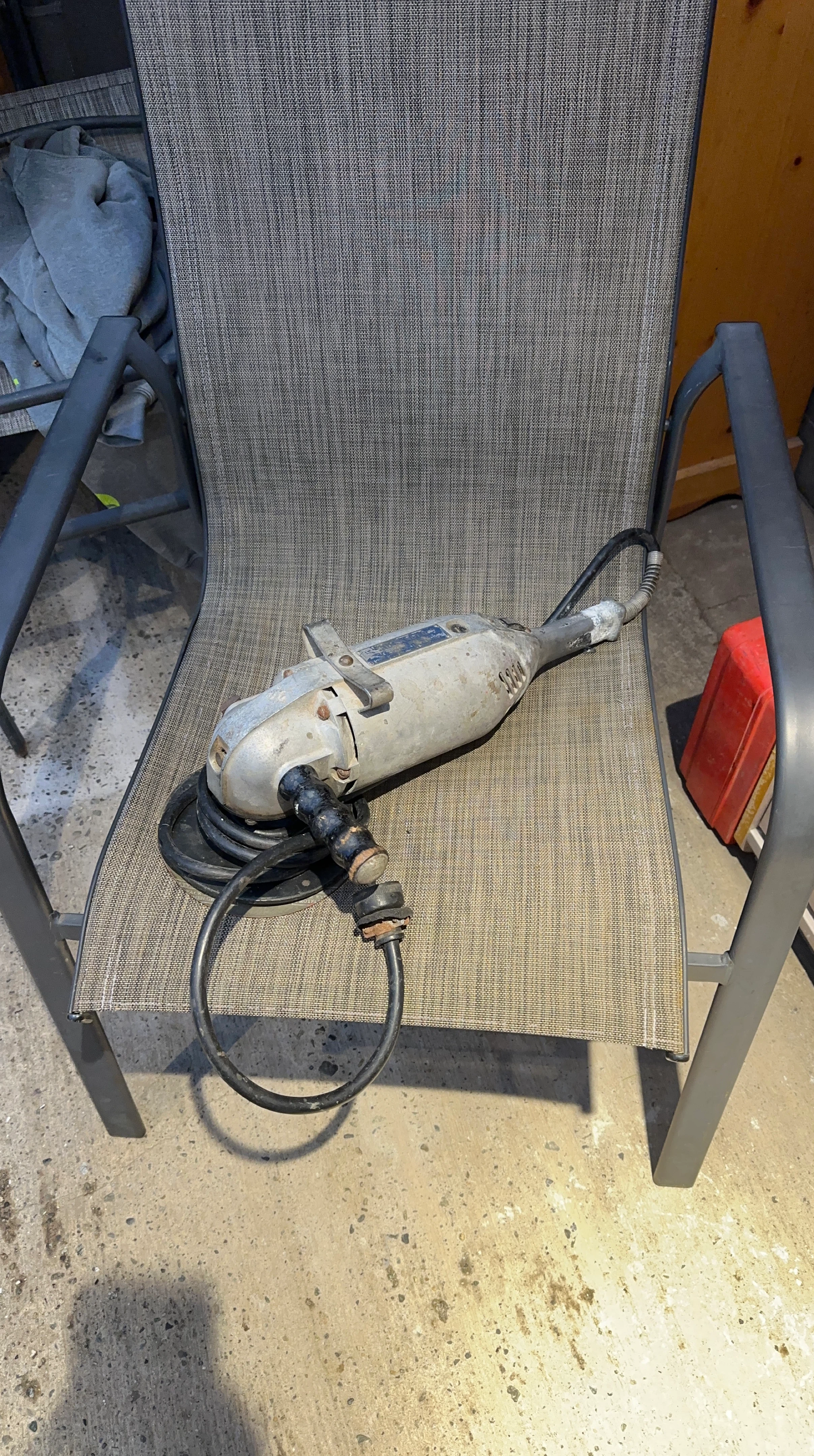 Selling a used electric angle grinder. It shows signs of wear but is still functional. Great for various grinding and cutting tasks