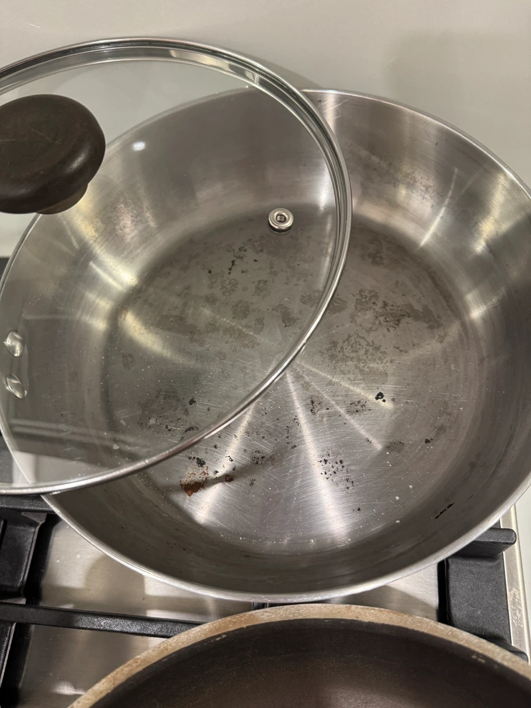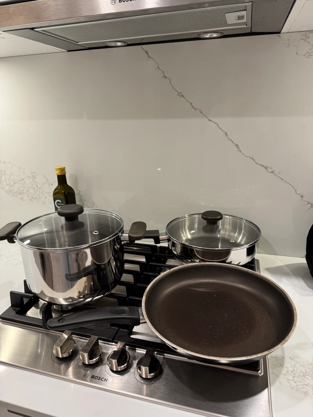 Selling a used frying pan and stock pot set. They have signs of wear and use, as you can see in the pictures. Still functional for cooking!