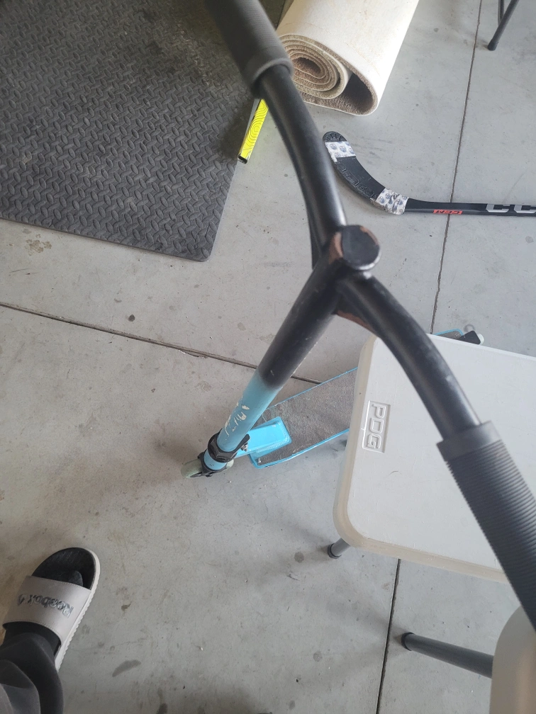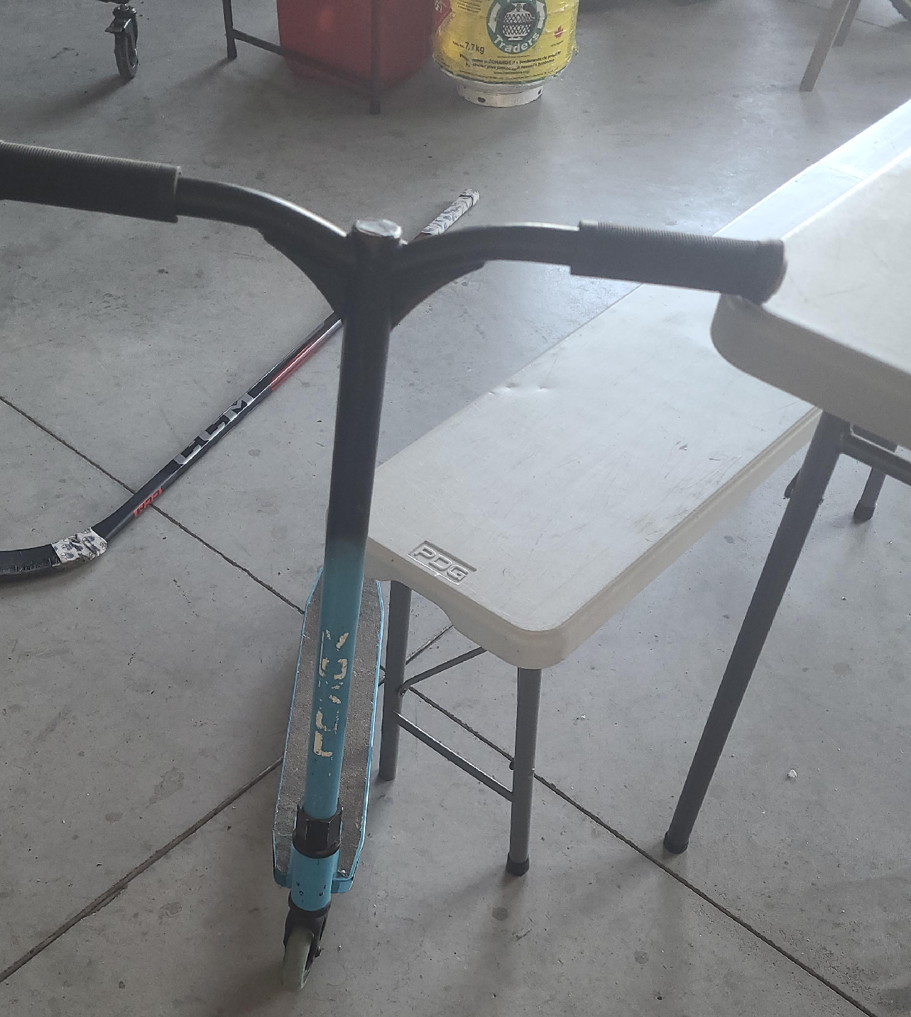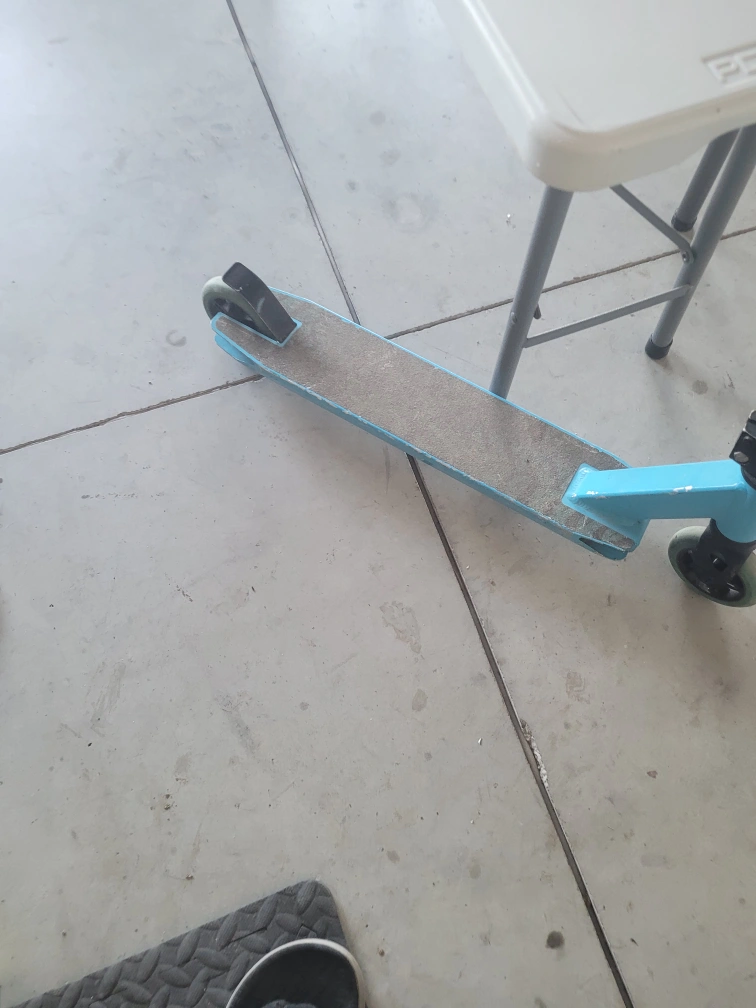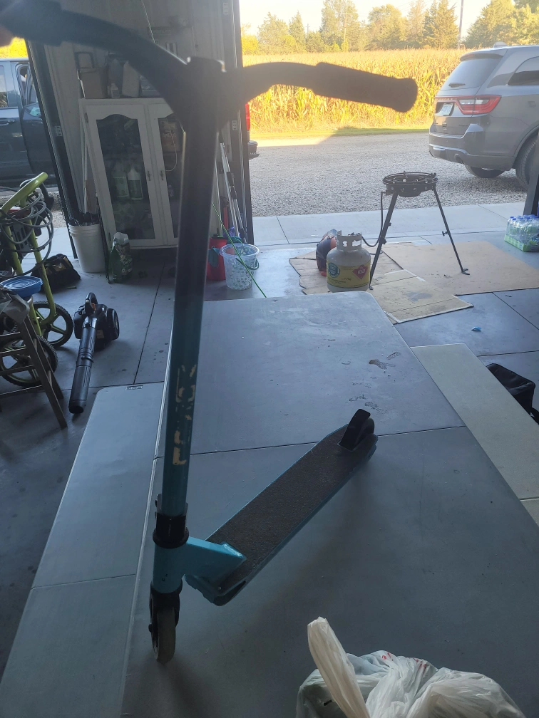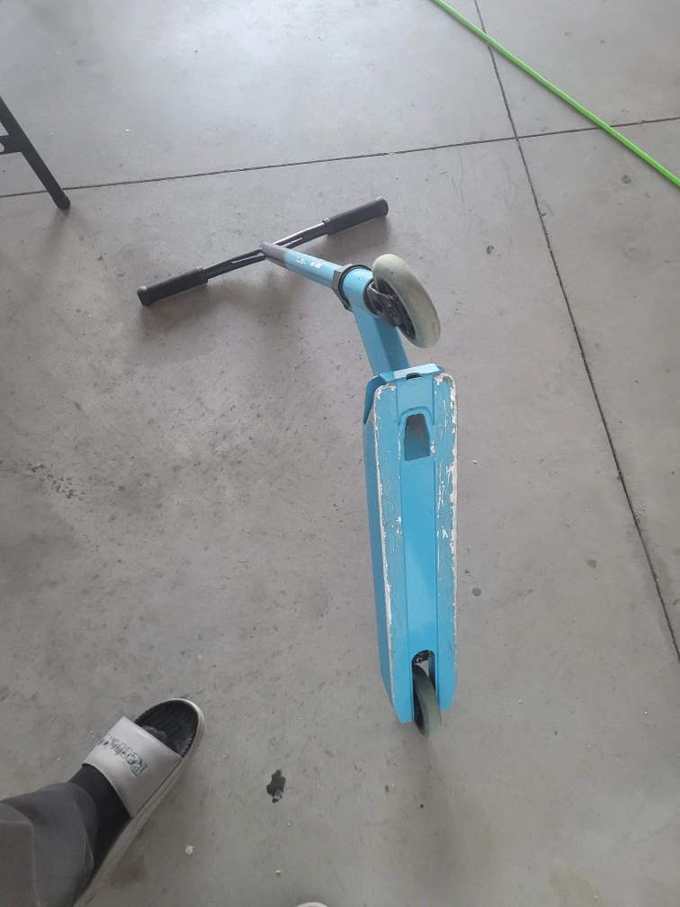 Selling a used Fuzion scooter in blue. It has some wear and tear, but still works well for cruising around the neighbourhood or hitting the skate park. Perfect for someone looking to get into scootering!