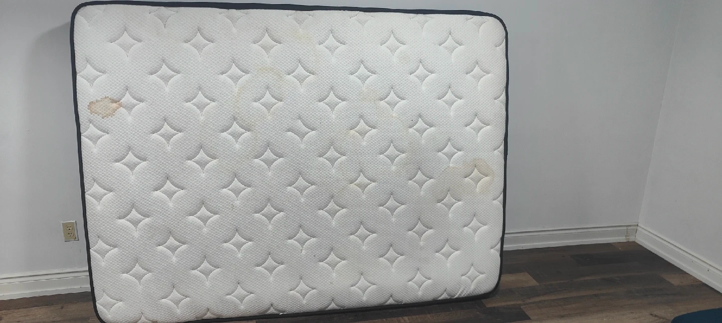 10Selling a used mattress. It has some visible stains on cover, but is otherwise in good condition. Perfect for a guest room or someone just starting out