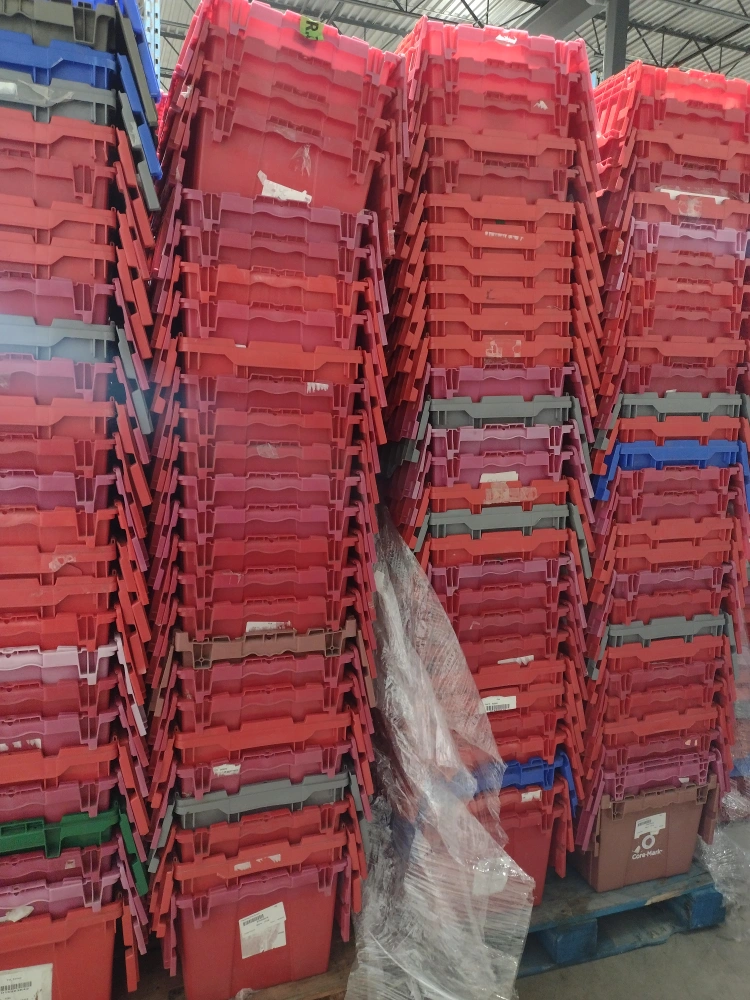 Used Plastic Stacking Bins With Fold In Lids -- Ap 50 Available