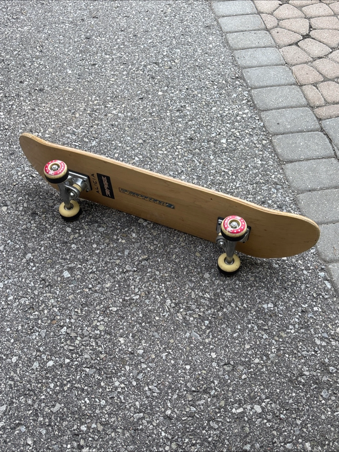 195Selling a used skateboard. It has some wear and tear, but it's still in good working condition for cruising around the neighbourhood. Great for beginners!