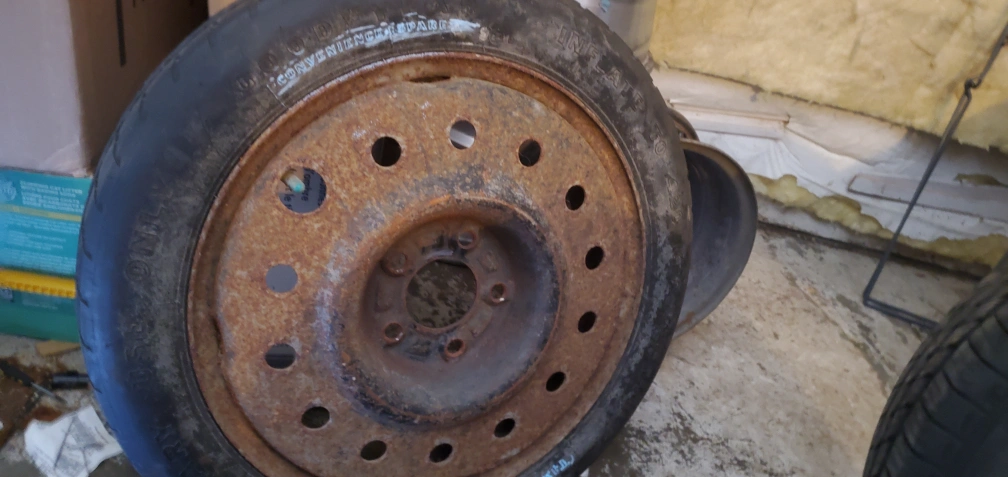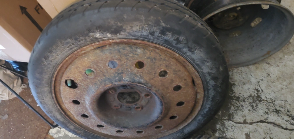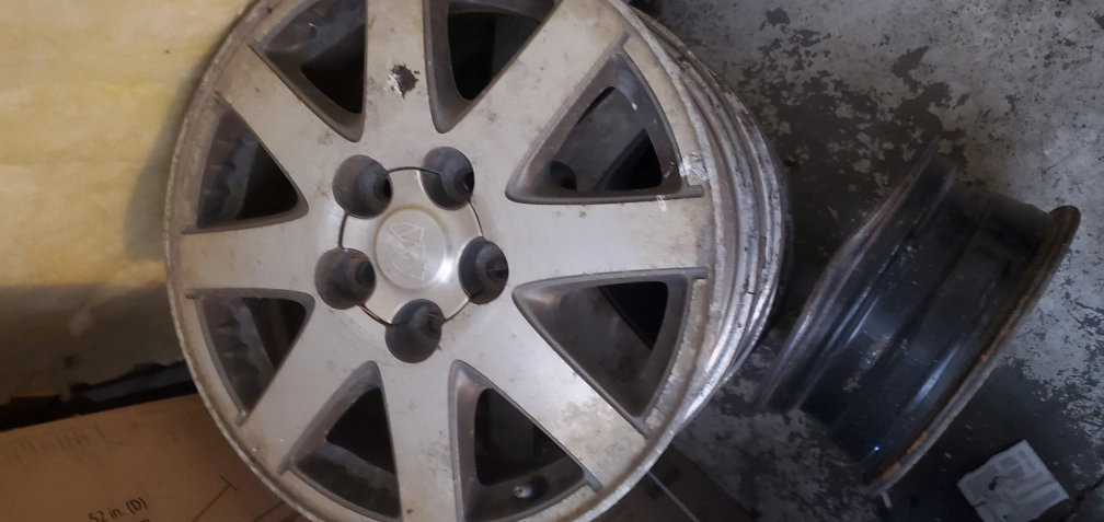 65Selling a set of used tires and rims. They show signs of wear and rust, as seen in the photos. Good for someone looking for a budget-friendly option or a spare set.(17" GM Buick)